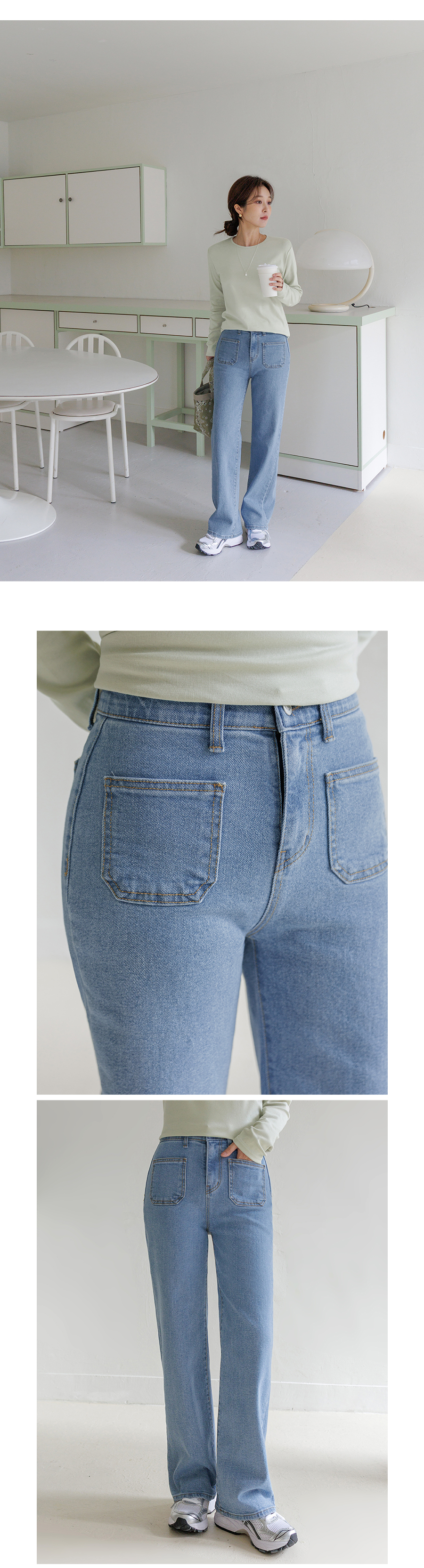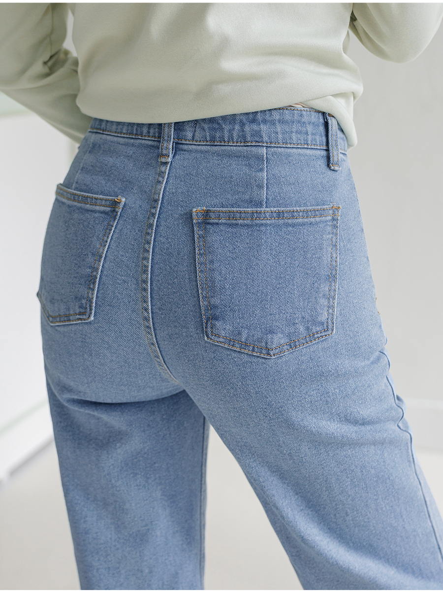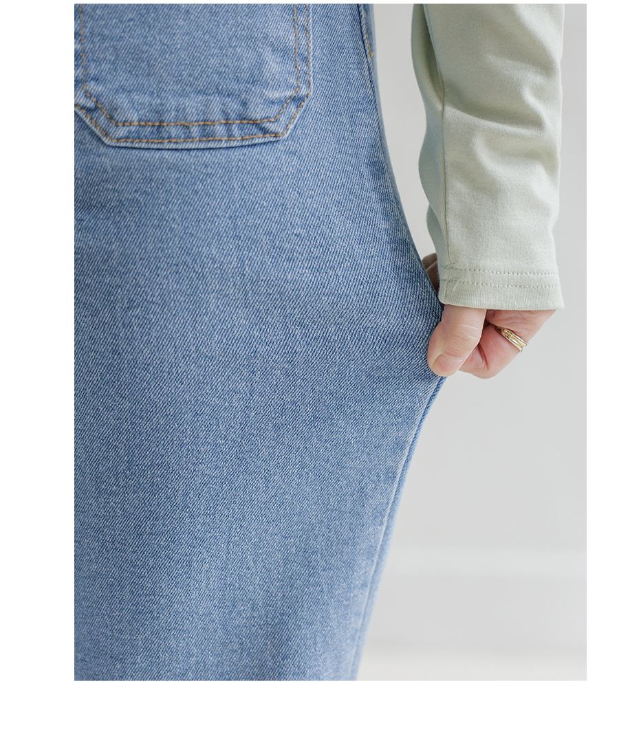 Attractive denim with hidden waist banding and chewy elasticity for a comfortable fit and two pockets! (S~XL/4 colors)