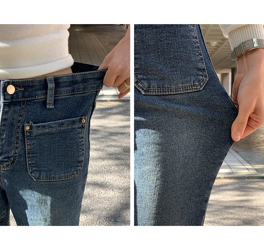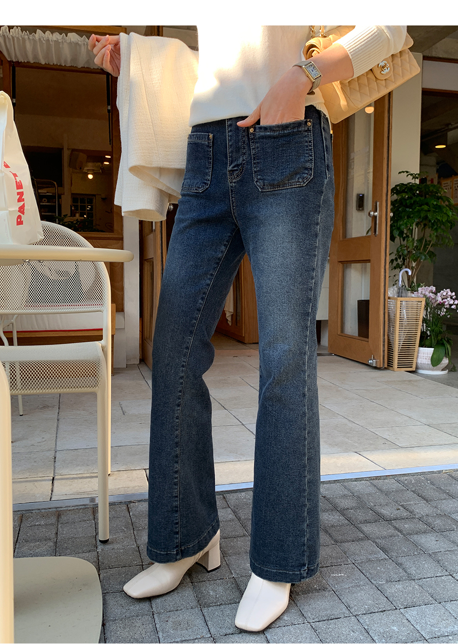 Two pocket bootcut fleece denim pants