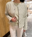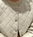 퀼팅 패턴이 돋보이는 에코 레더 자켓이에요.