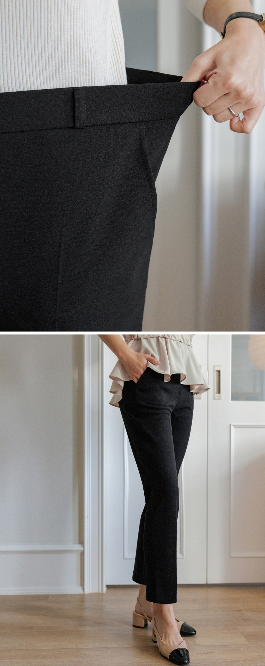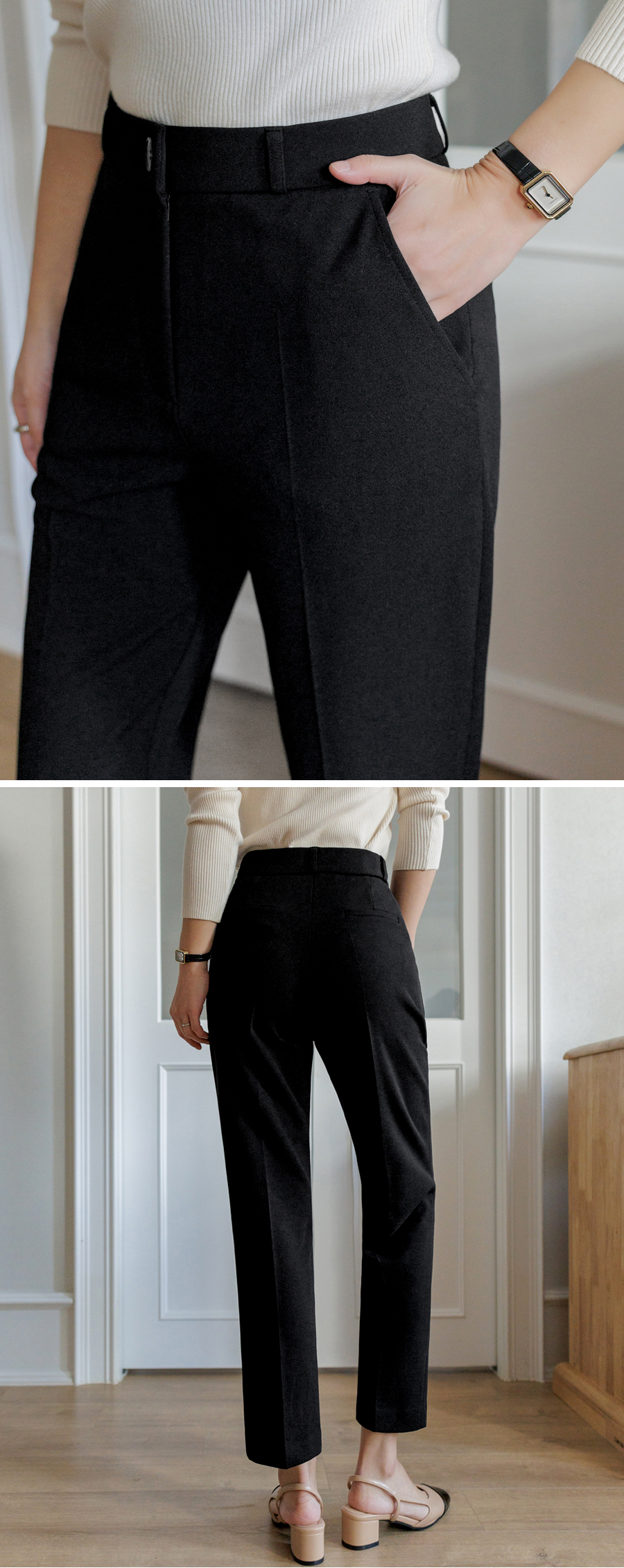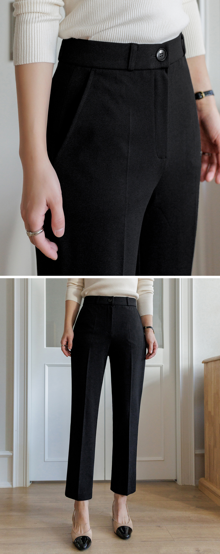 Who wears wrinkled pants these days? Perfect pants that are easy to manage. All-purpose slacks that fit neatly from the thighs to the hem (3 colors / S~XXL / Basic, Long)