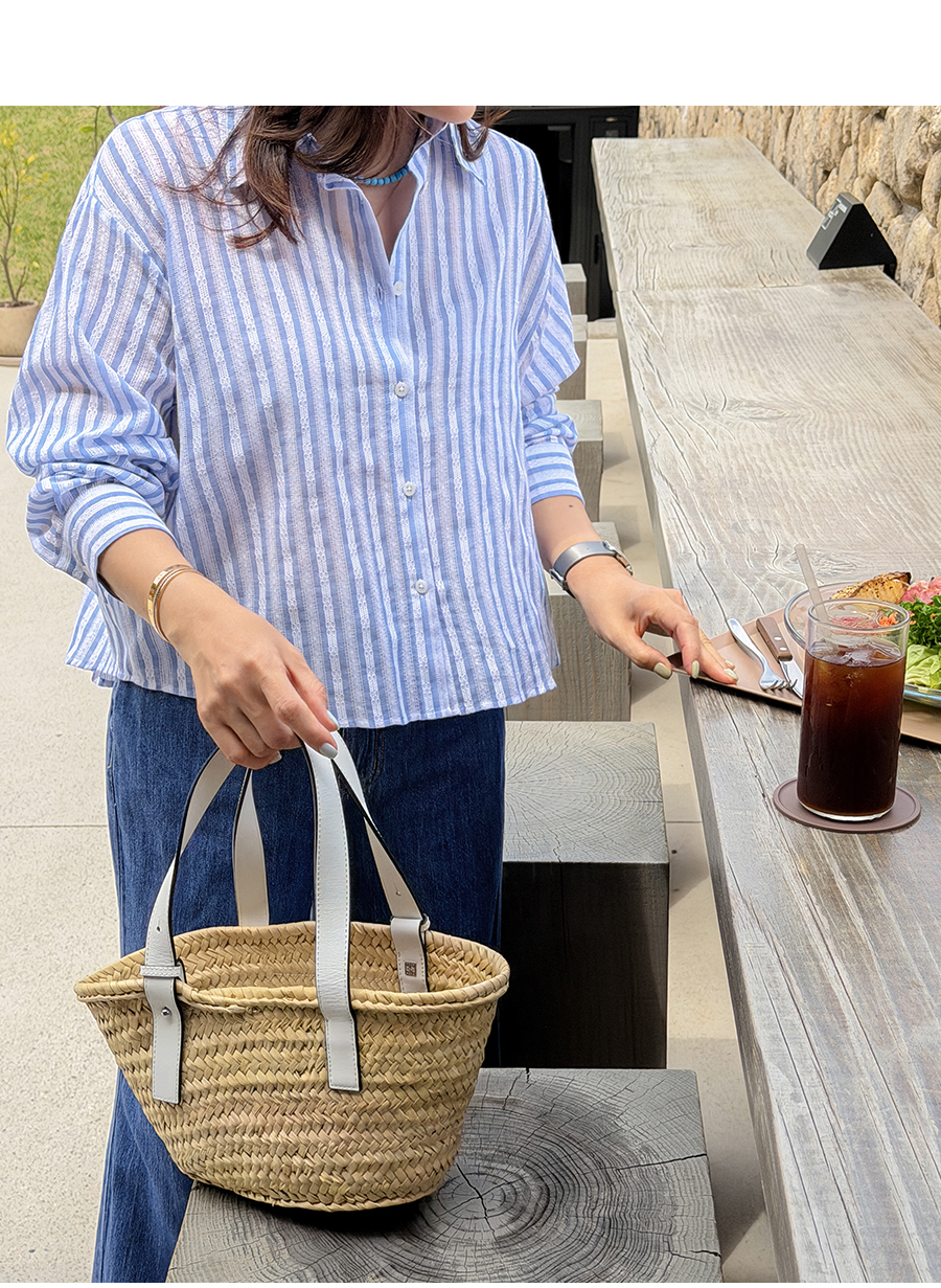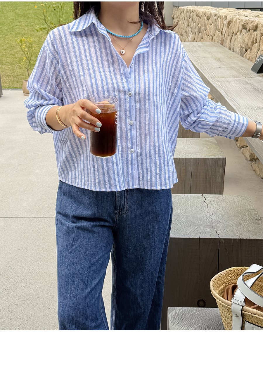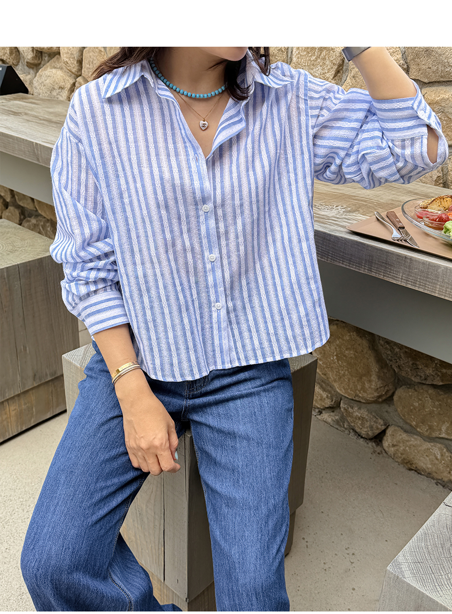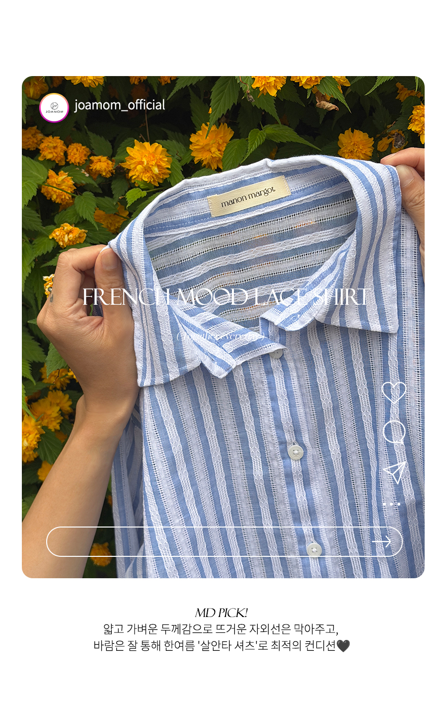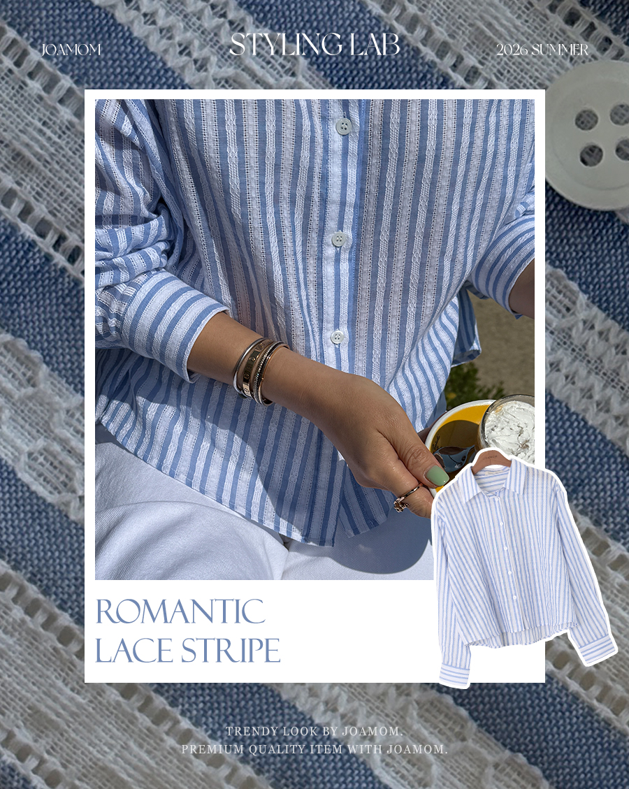 코튼 레이스+스트라이프로 담백하면서 여리한 감성의 셔츠