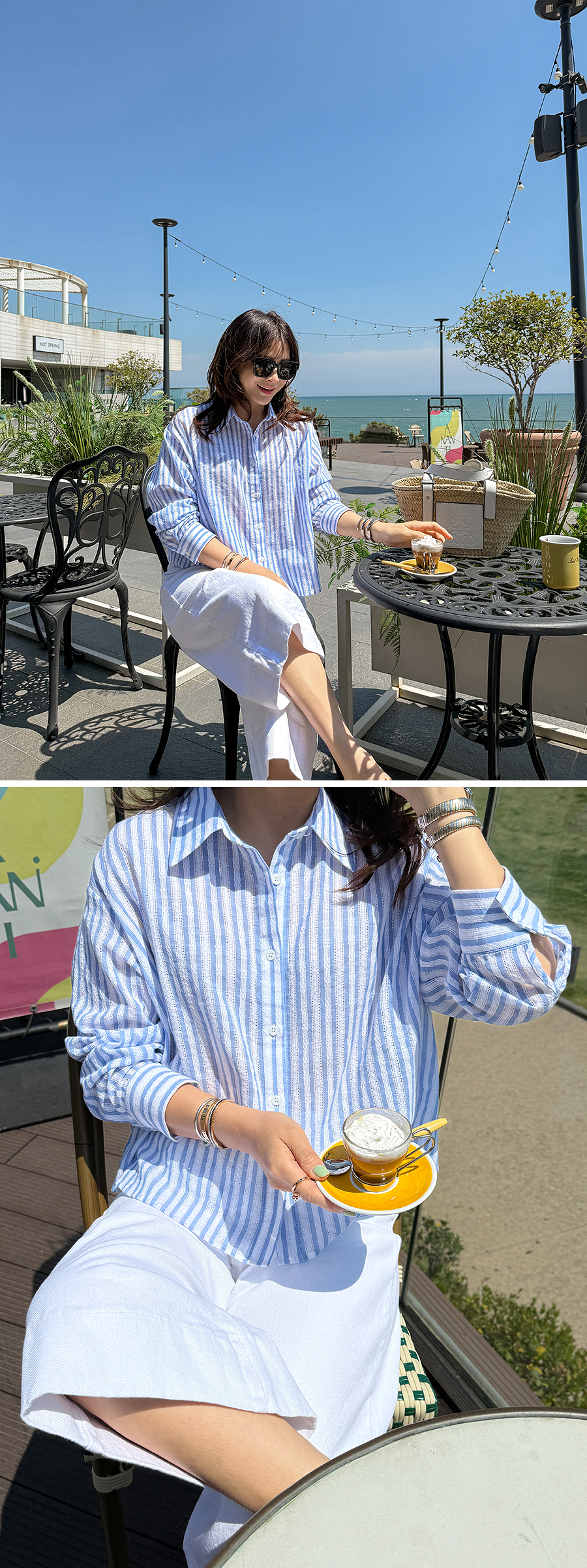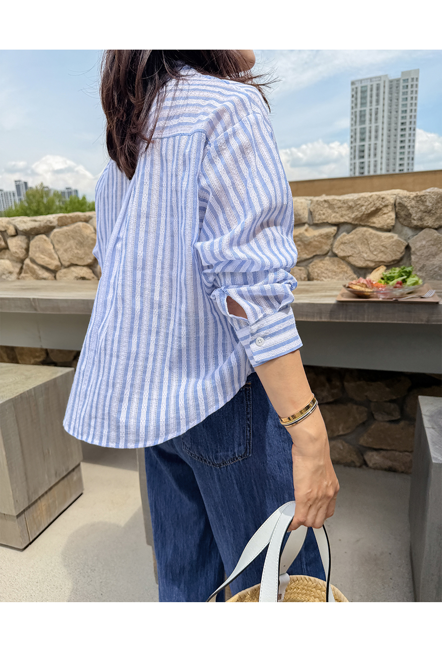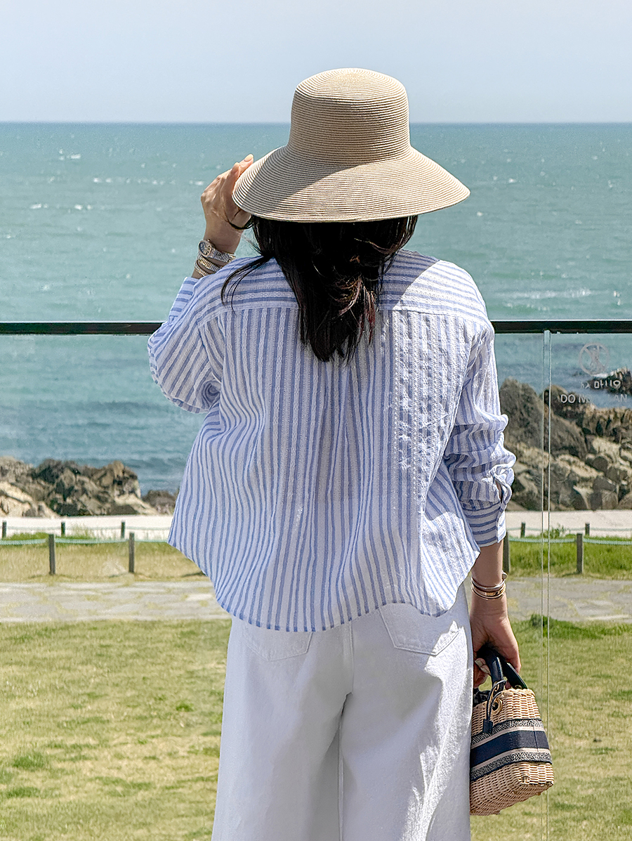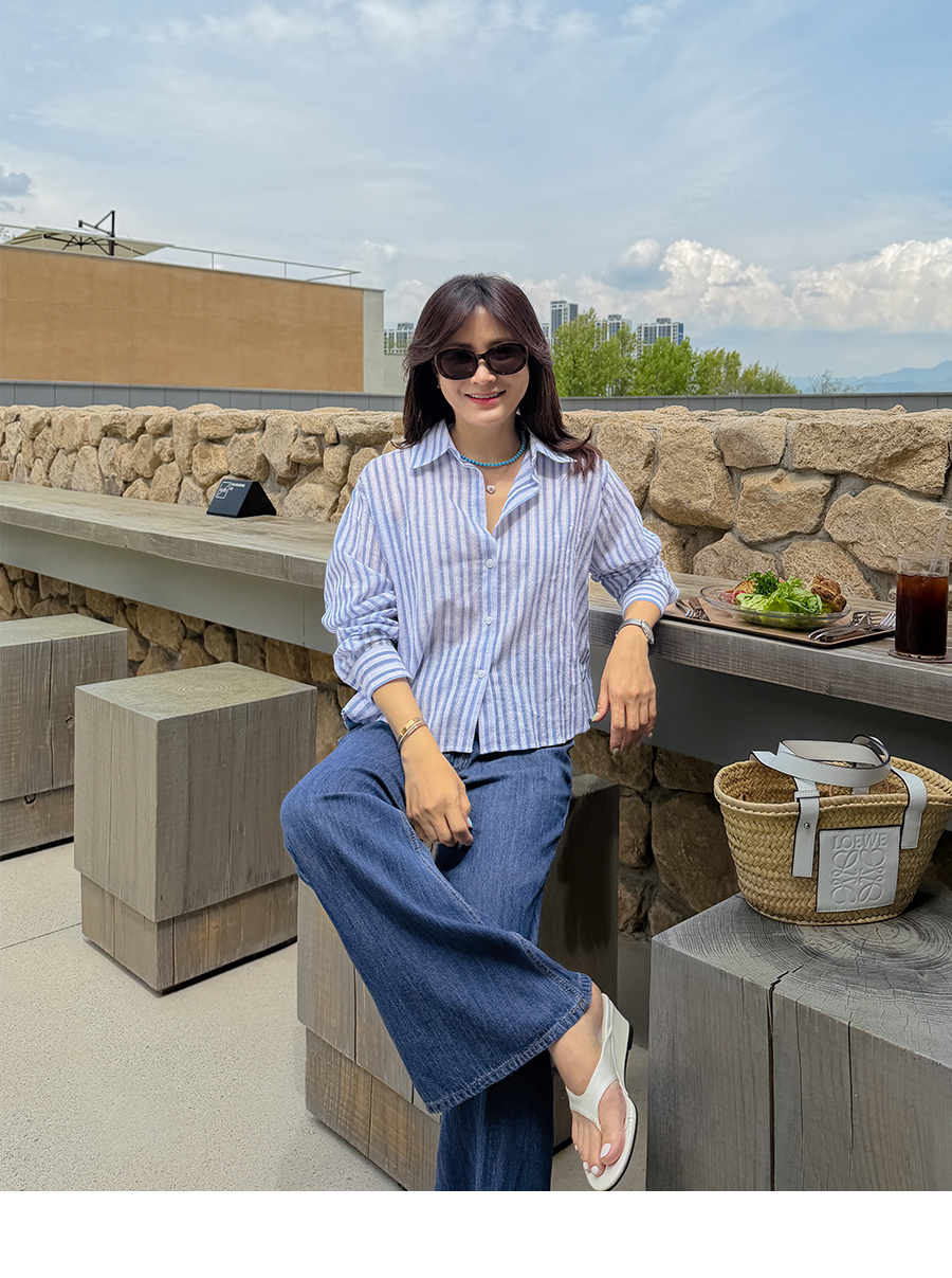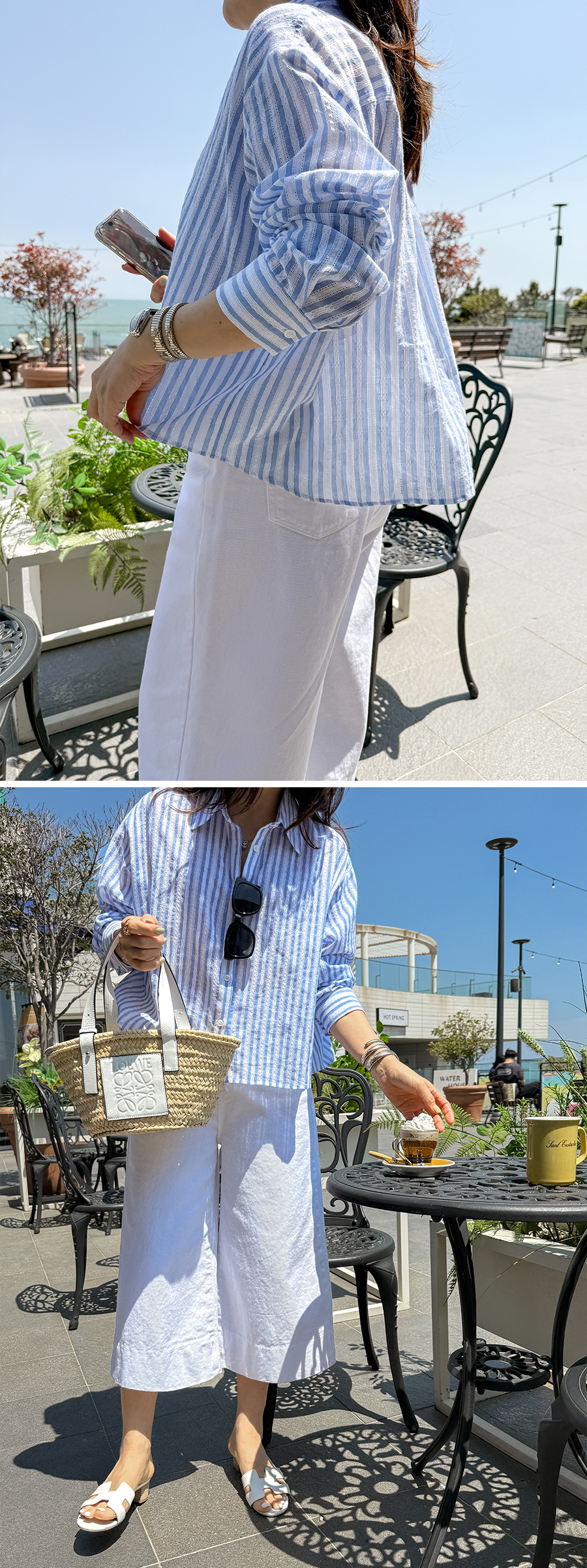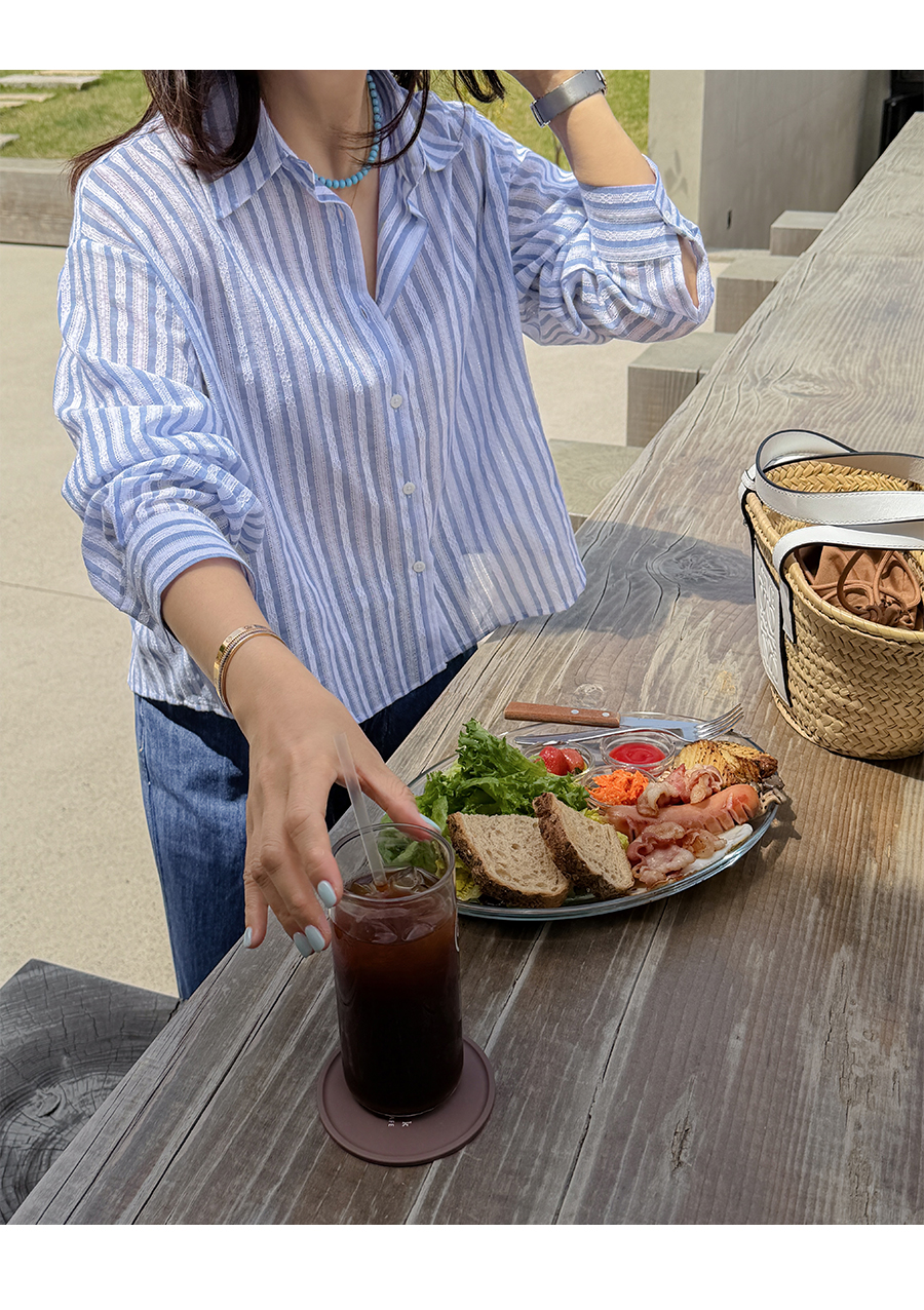코튼 레이스+스트라이프로 담백하면서 여리한 감성의 셔츠