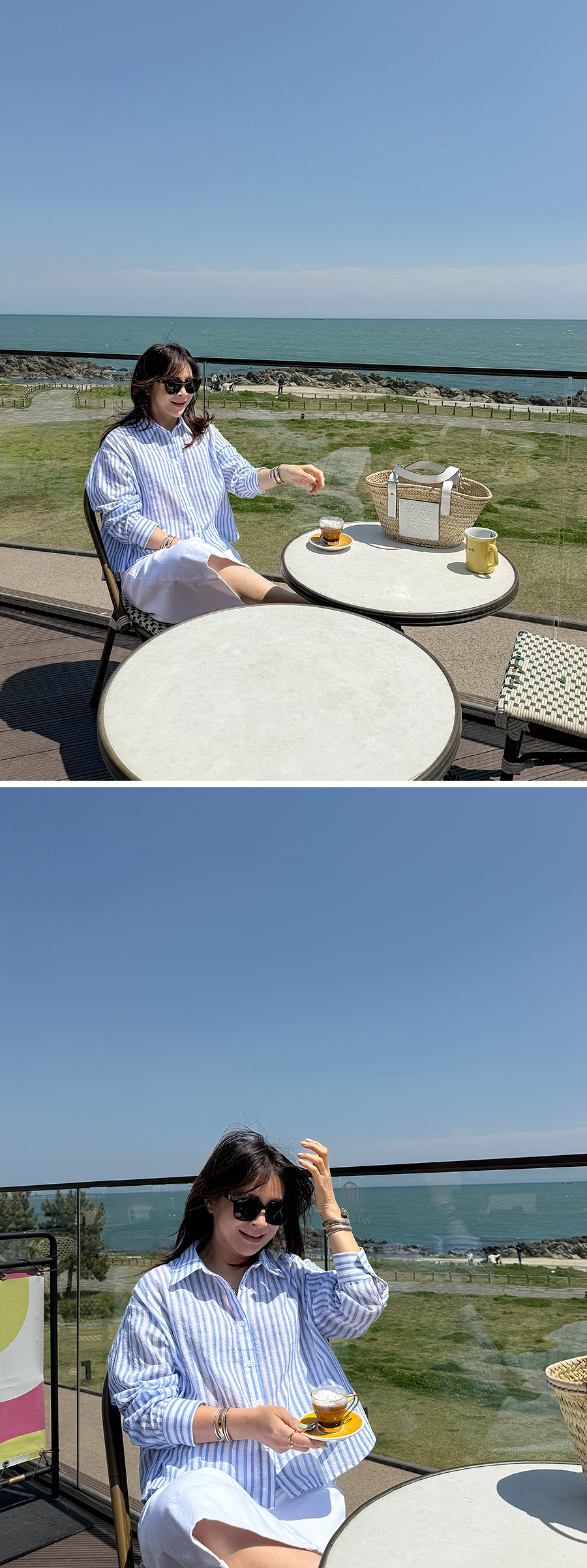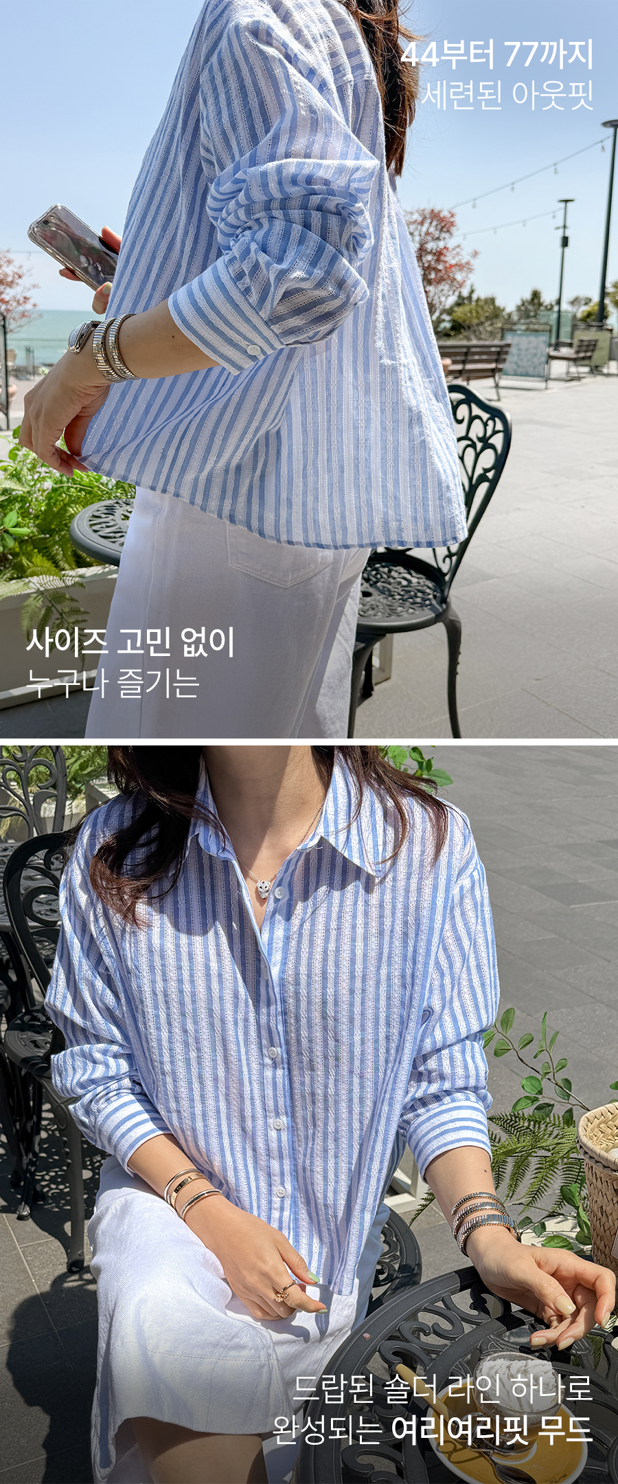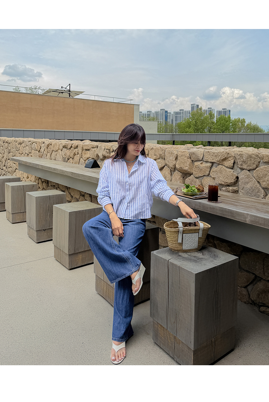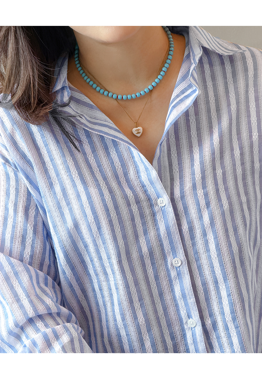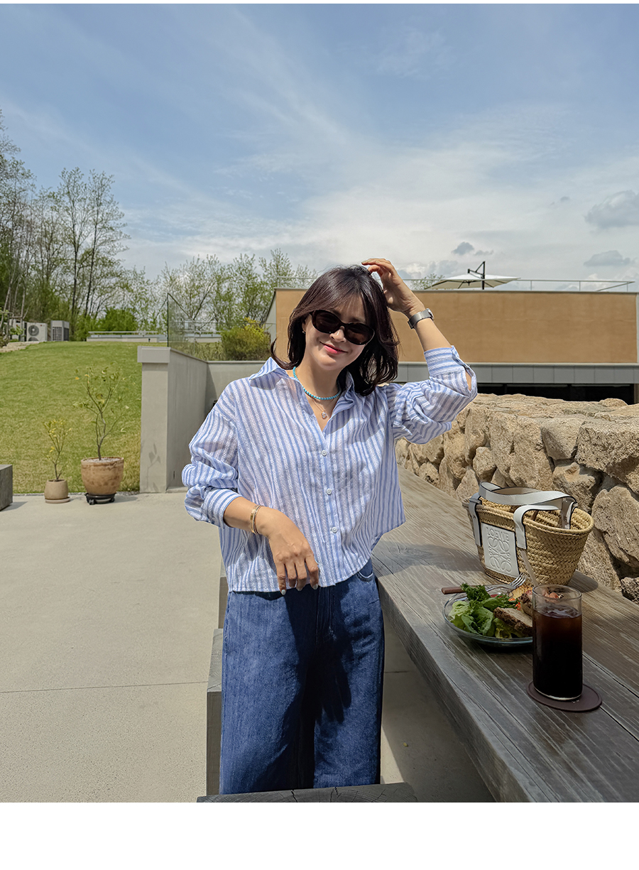 코튼 레이스+스트라이프로 담백하면서 여리한 감성의 셔츠