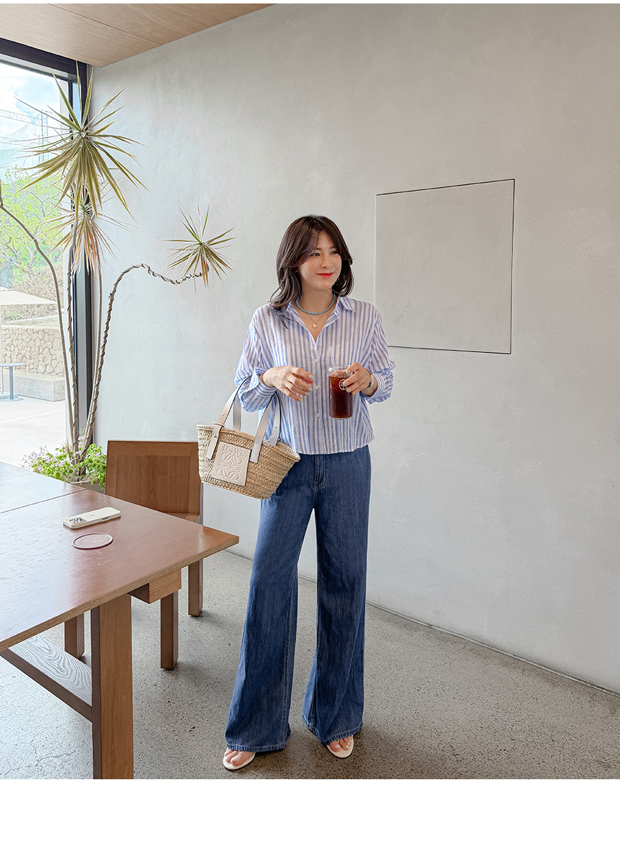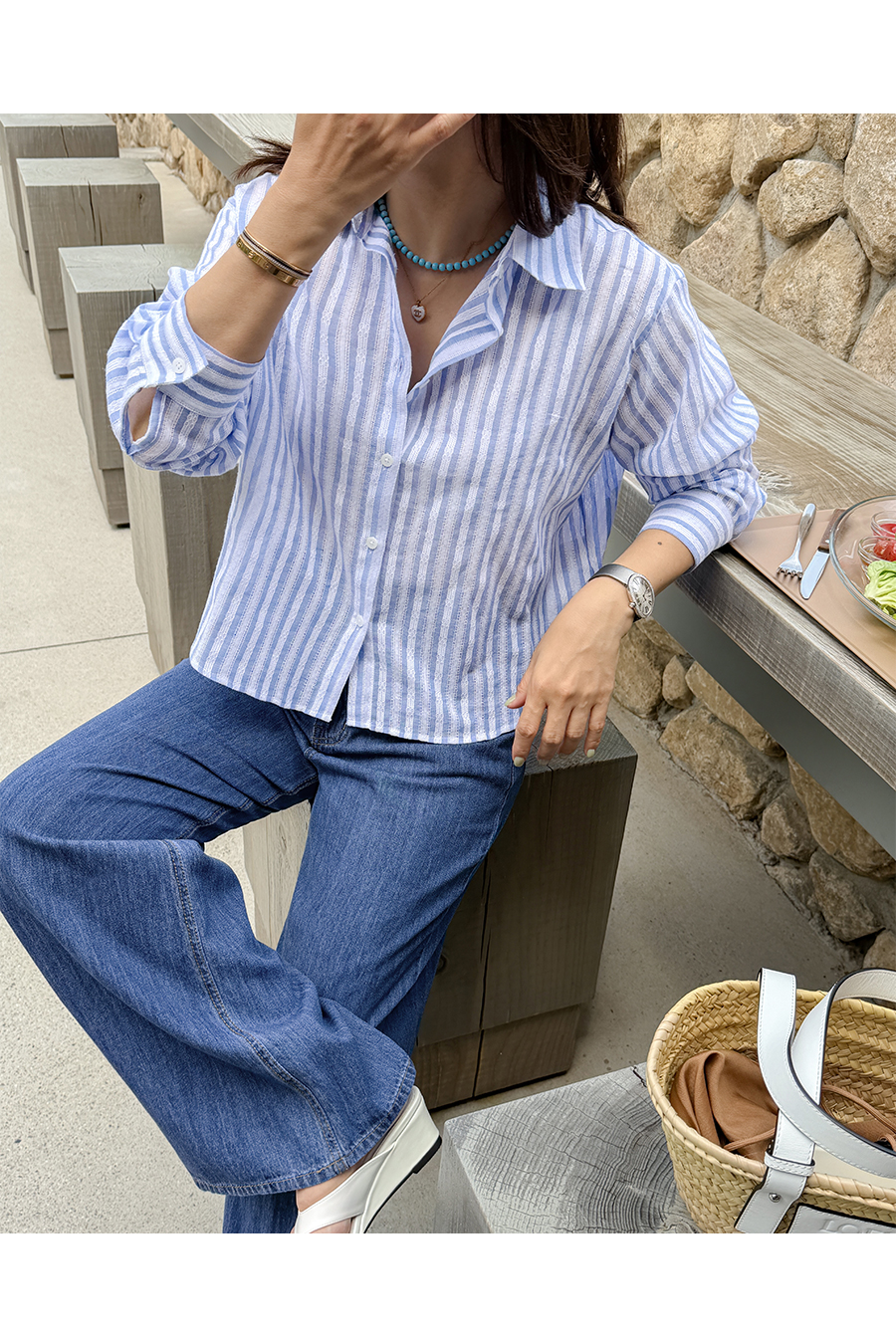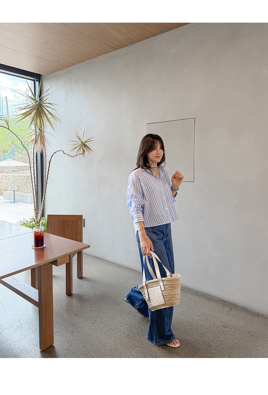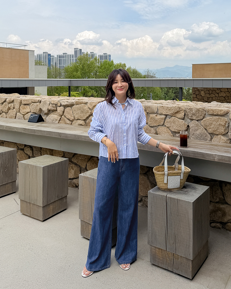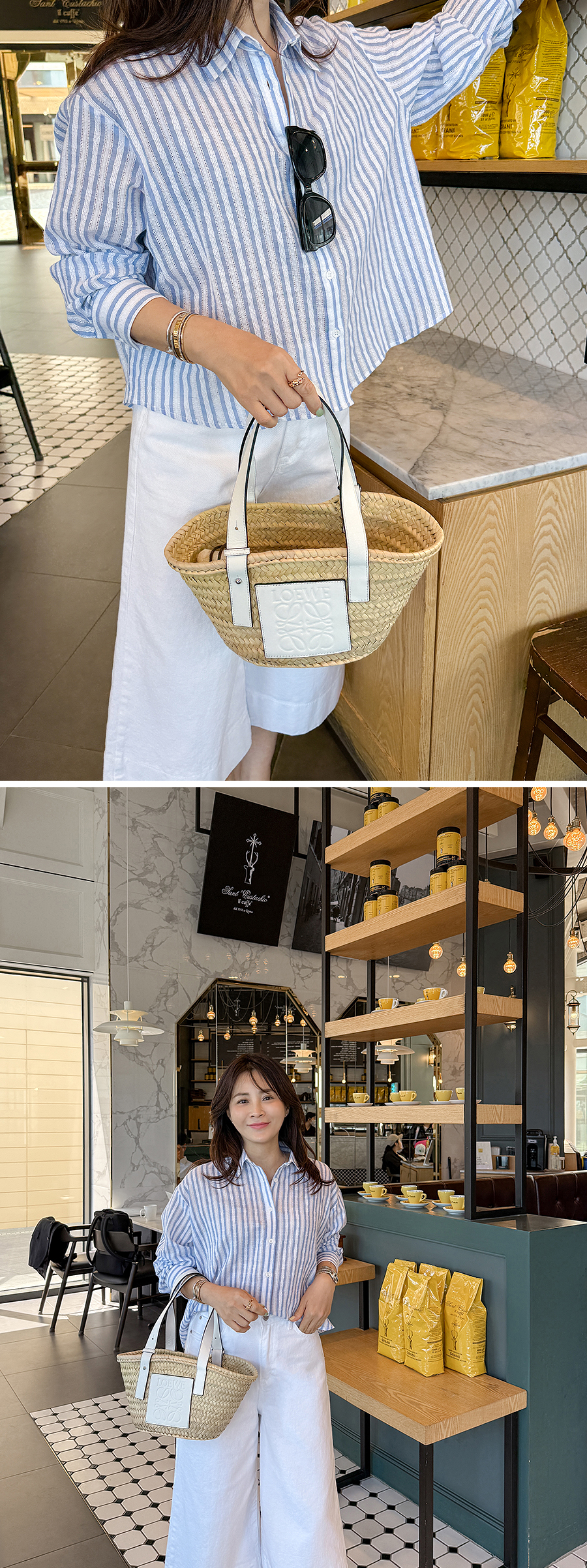 코튼 레이스+스트라이프로 담백하면서 여리한 감성의 셔츠