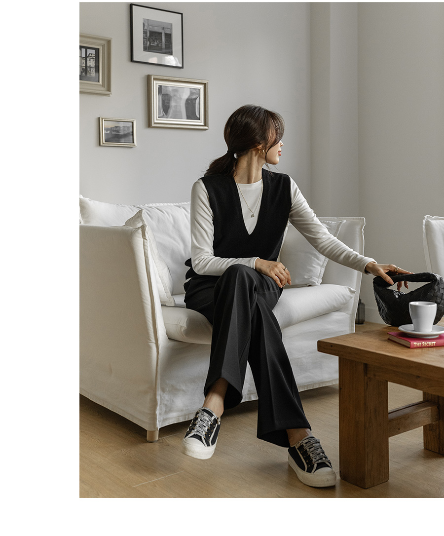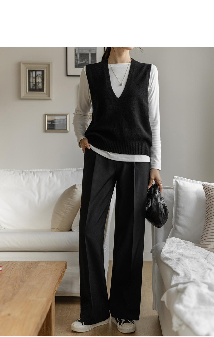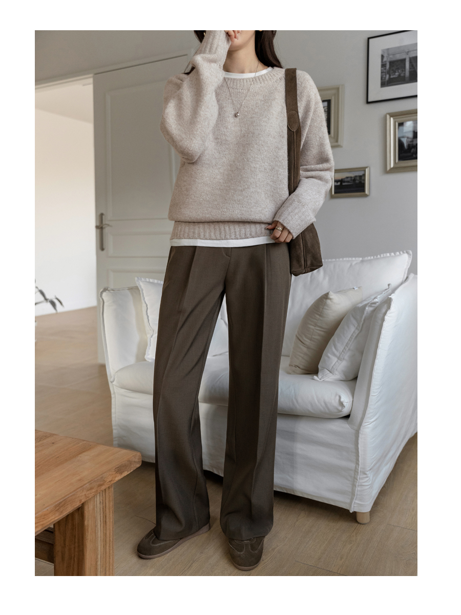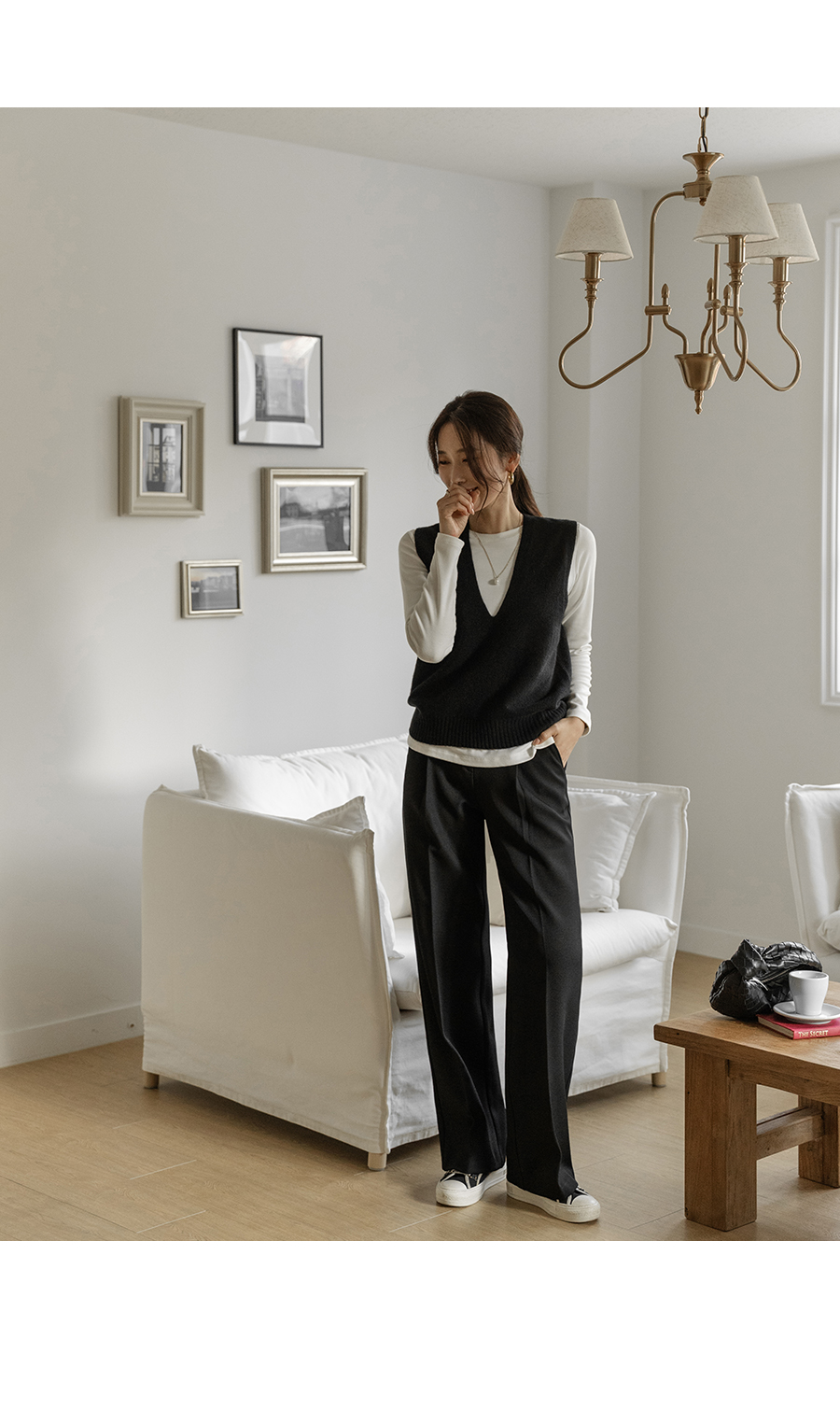♥Napping Lining♥ Slacks that will never need ironing! The easiest straight fit with a smooth, comfortable feel! (4 colors / S~XL / Basic, Long / Regular lining, napping)