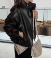 High-neck leather blouson jacket