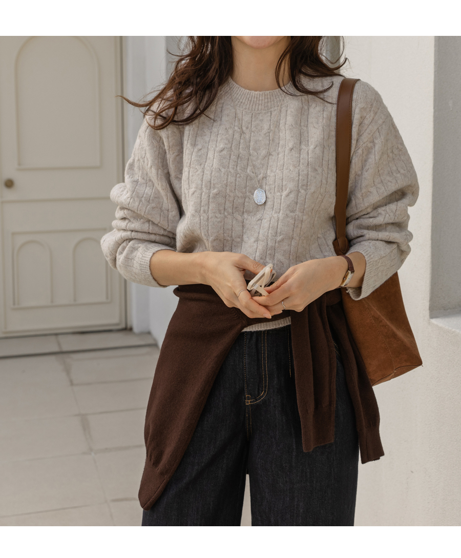 Available in three sizes, this knit is perfect for your size! The classic cable knit design offers versatile styling options (7 colors / S~L)