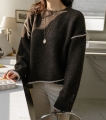 배색 라인이 돋보이는 루즈핏 니트에요