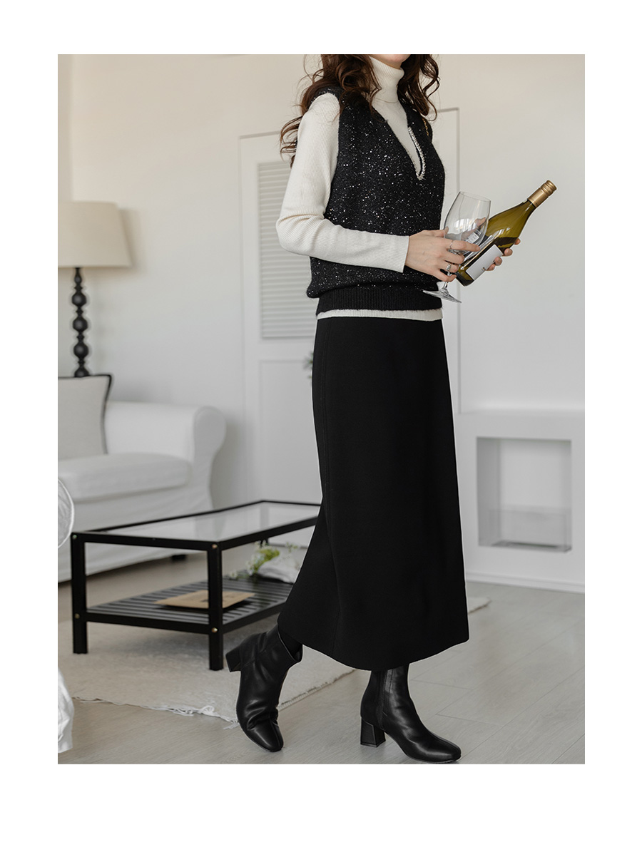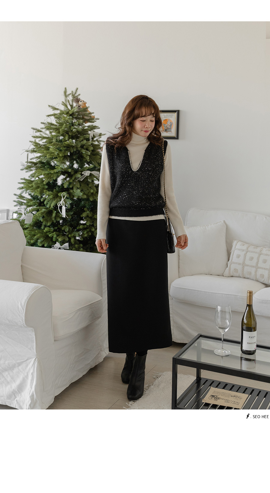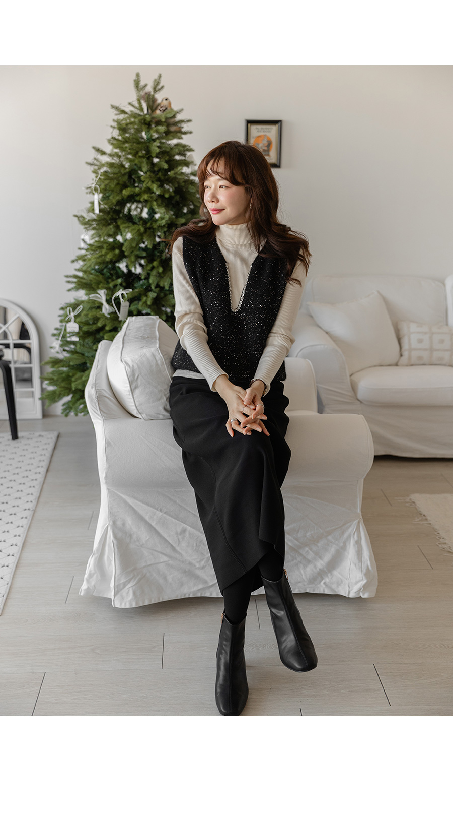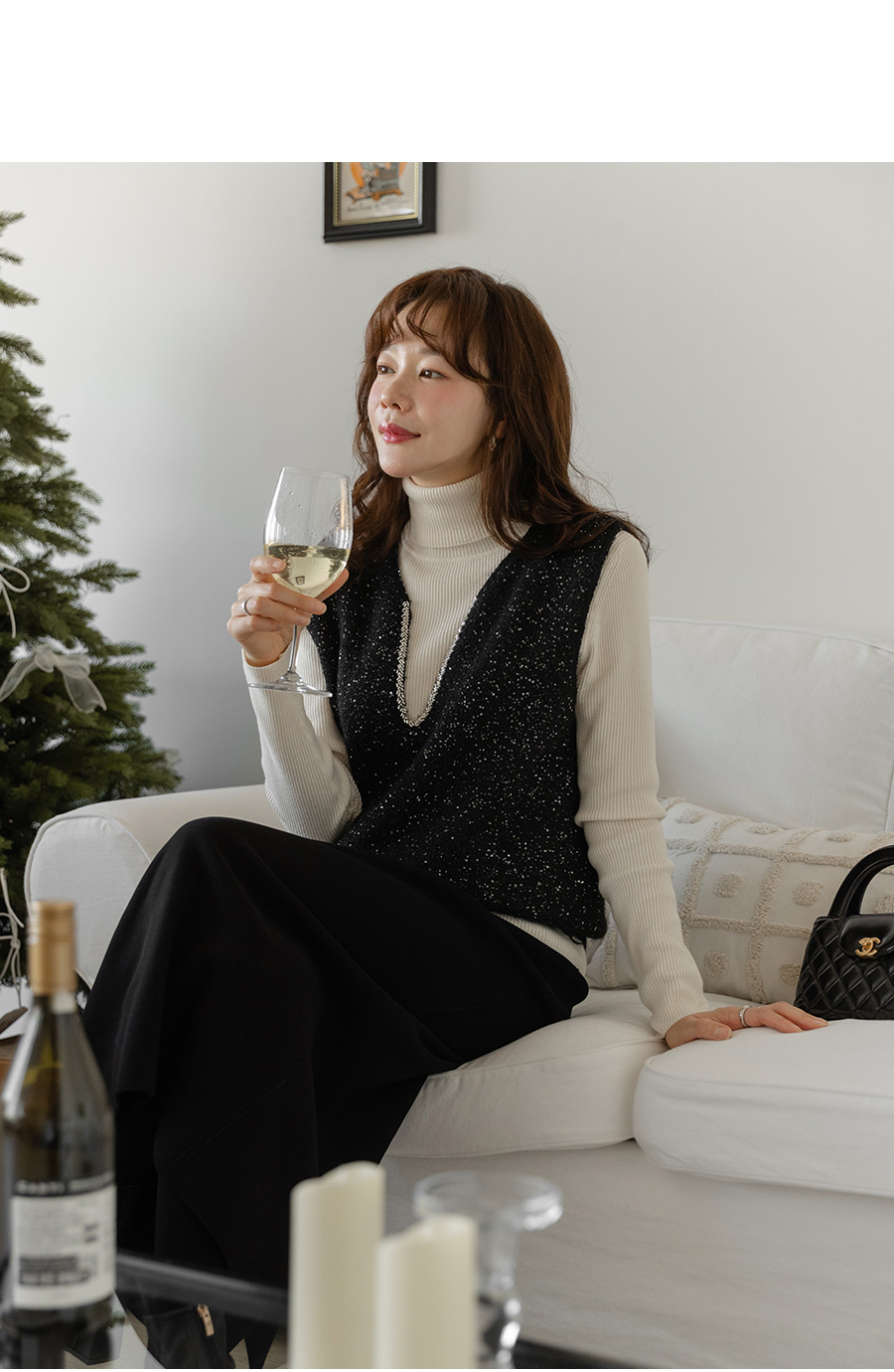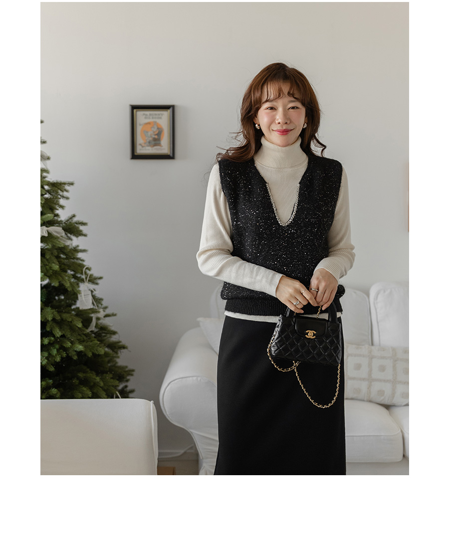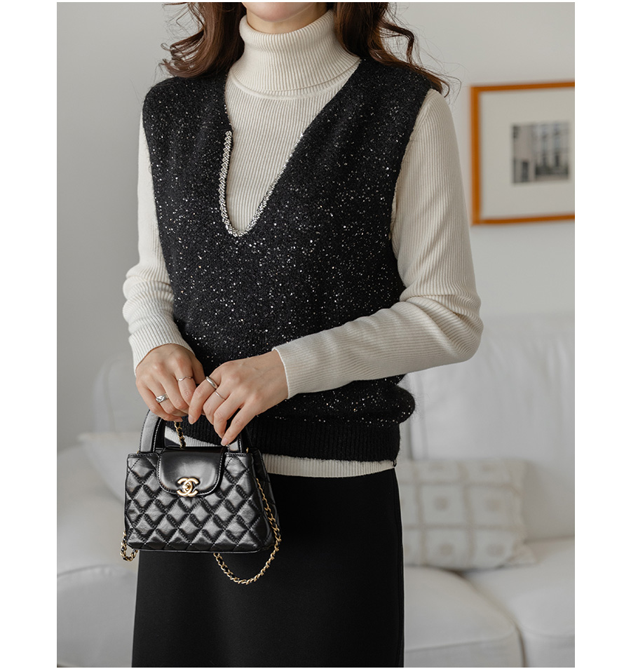 Knit Vest with sparkly sequins and glitter yarn. The neckline is cubic, adding a touch of luxury to the look! (3 colors)