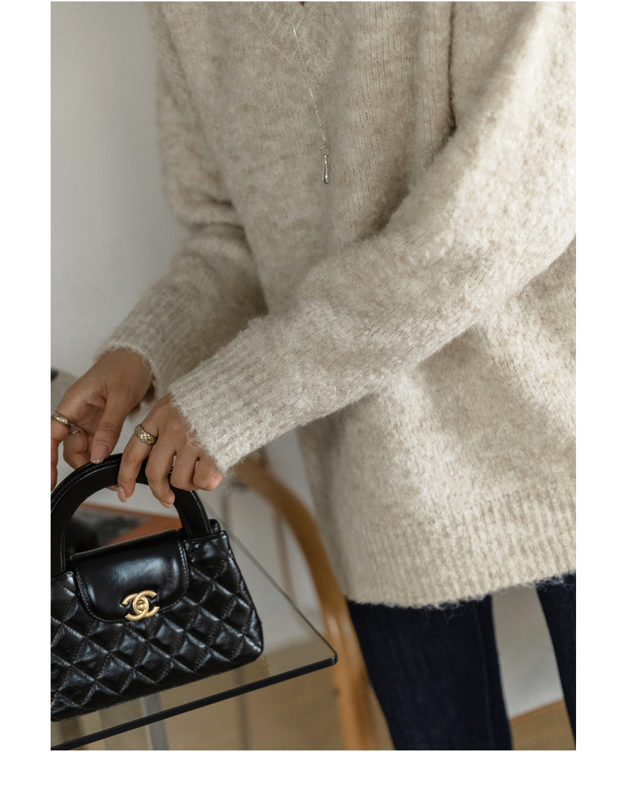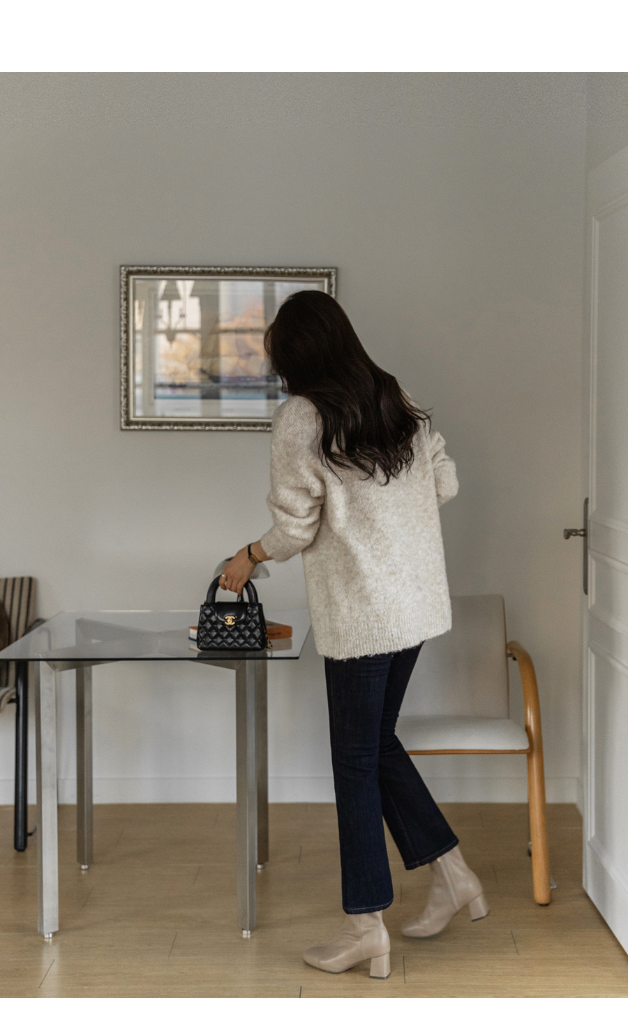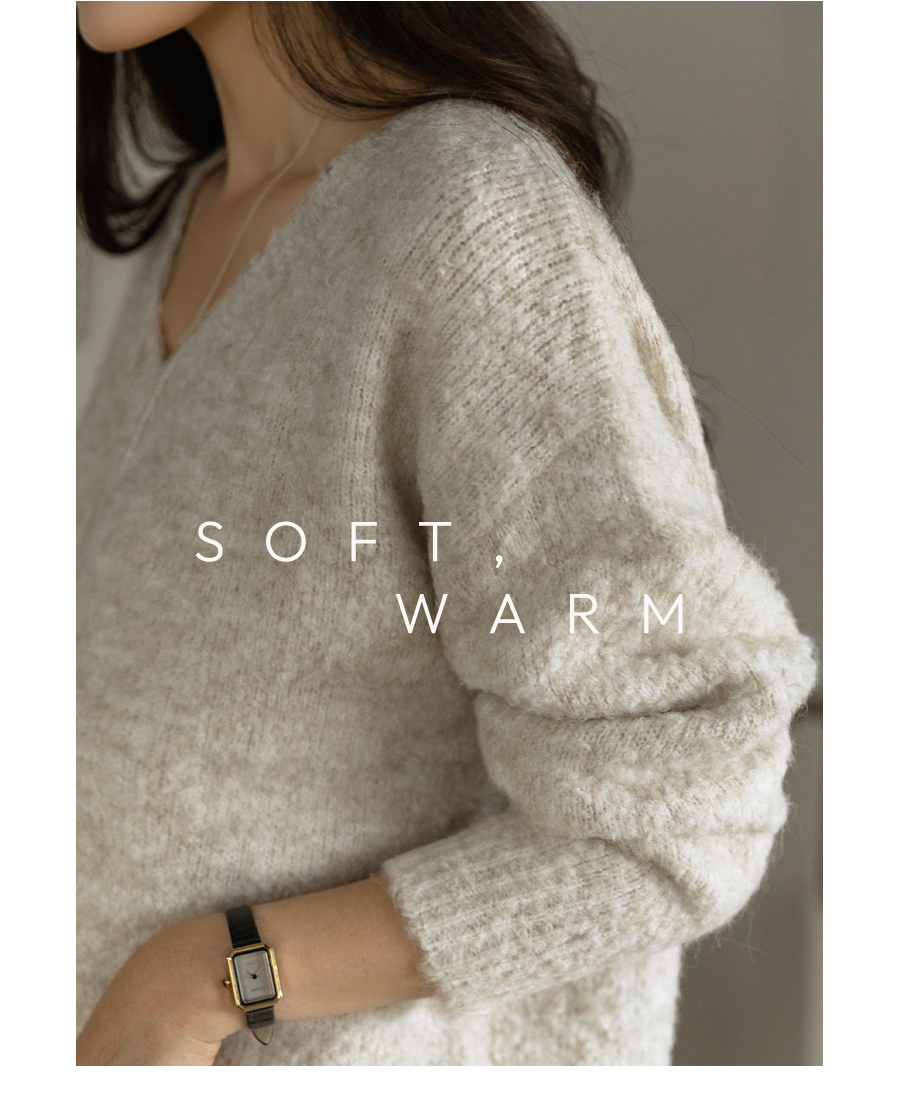 This thick bouclé knit is full of warmth with its wool material. It has a generous fit and comes in three sizes, making it highly recommended for chubby ladies! (7 colors / S~L)