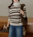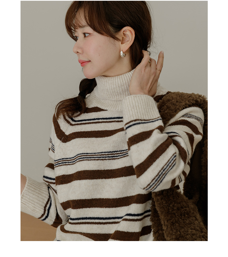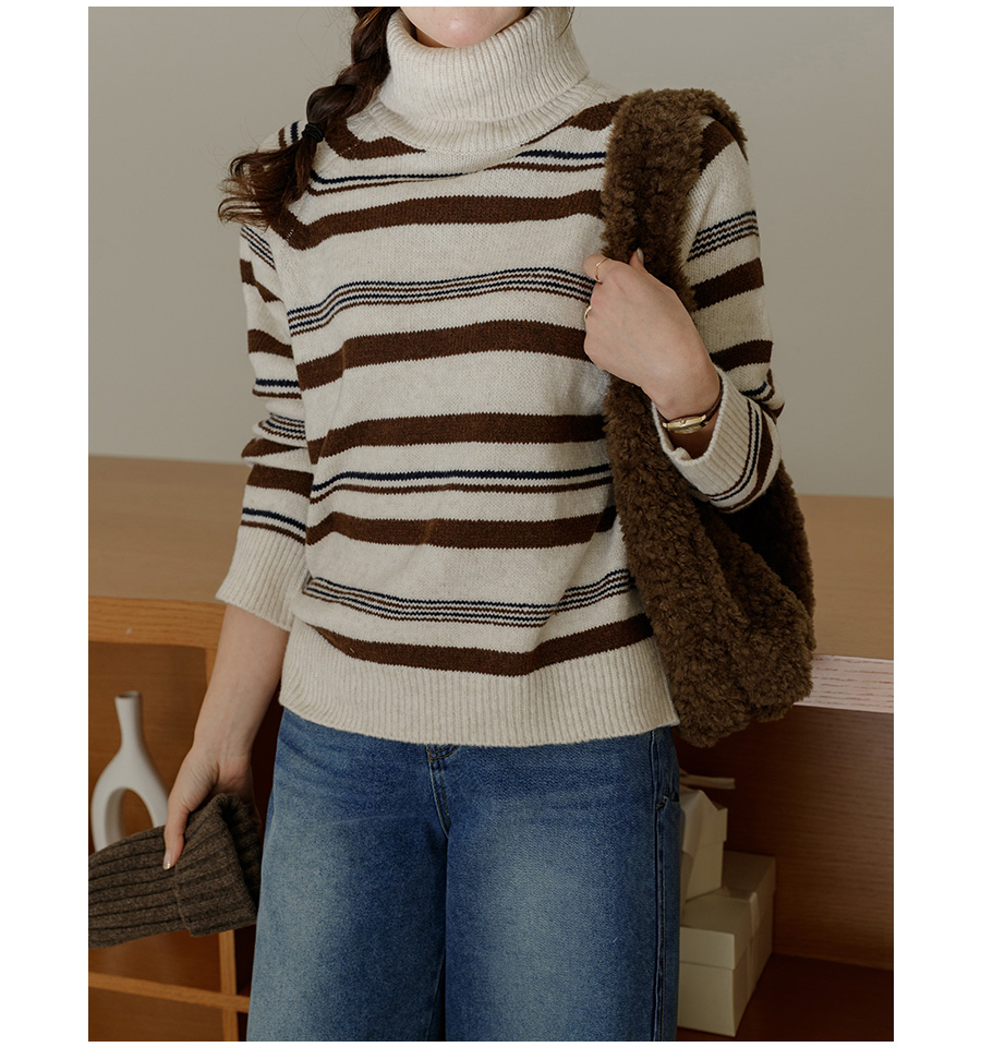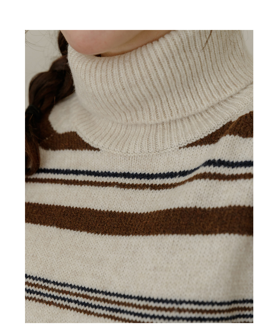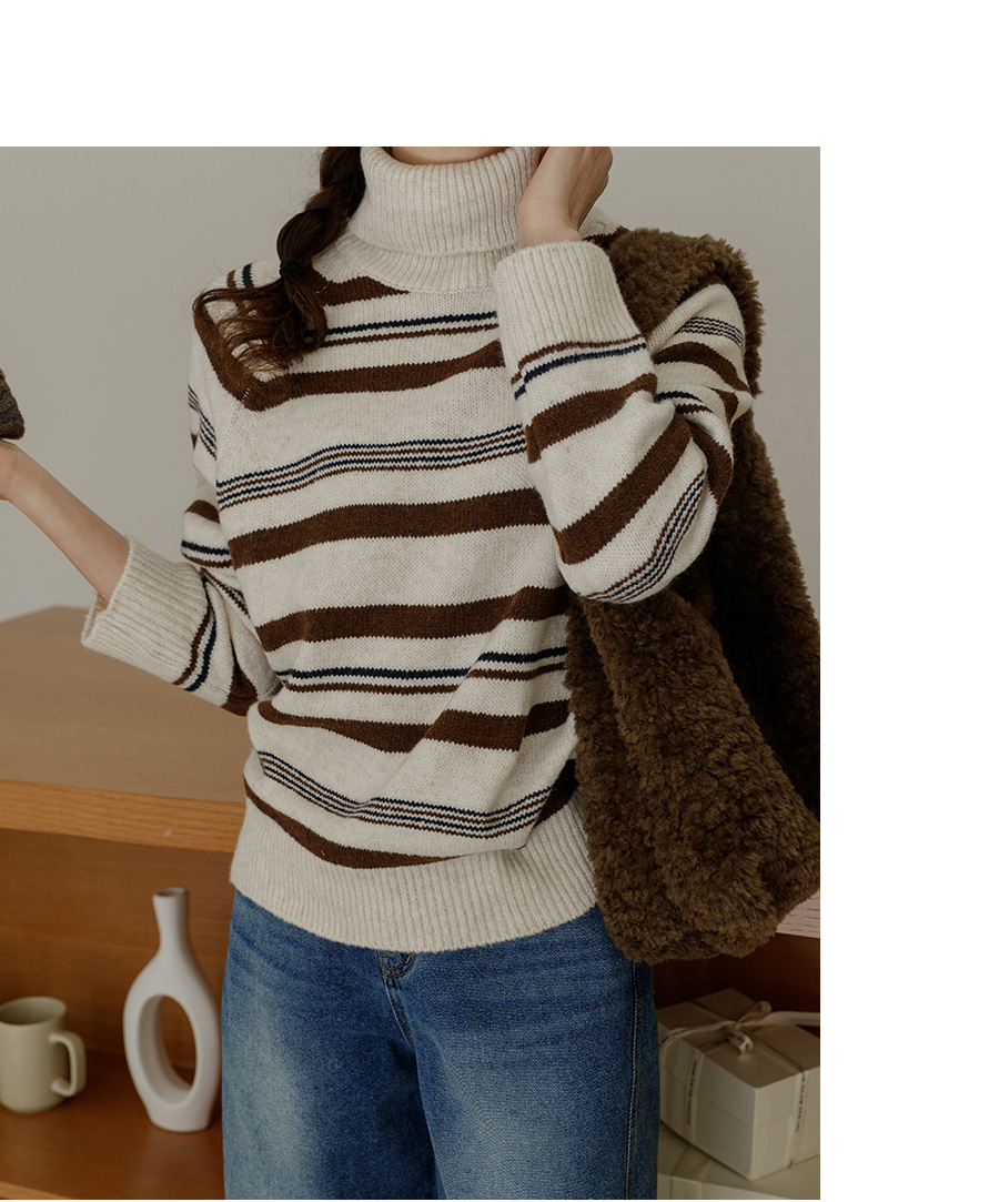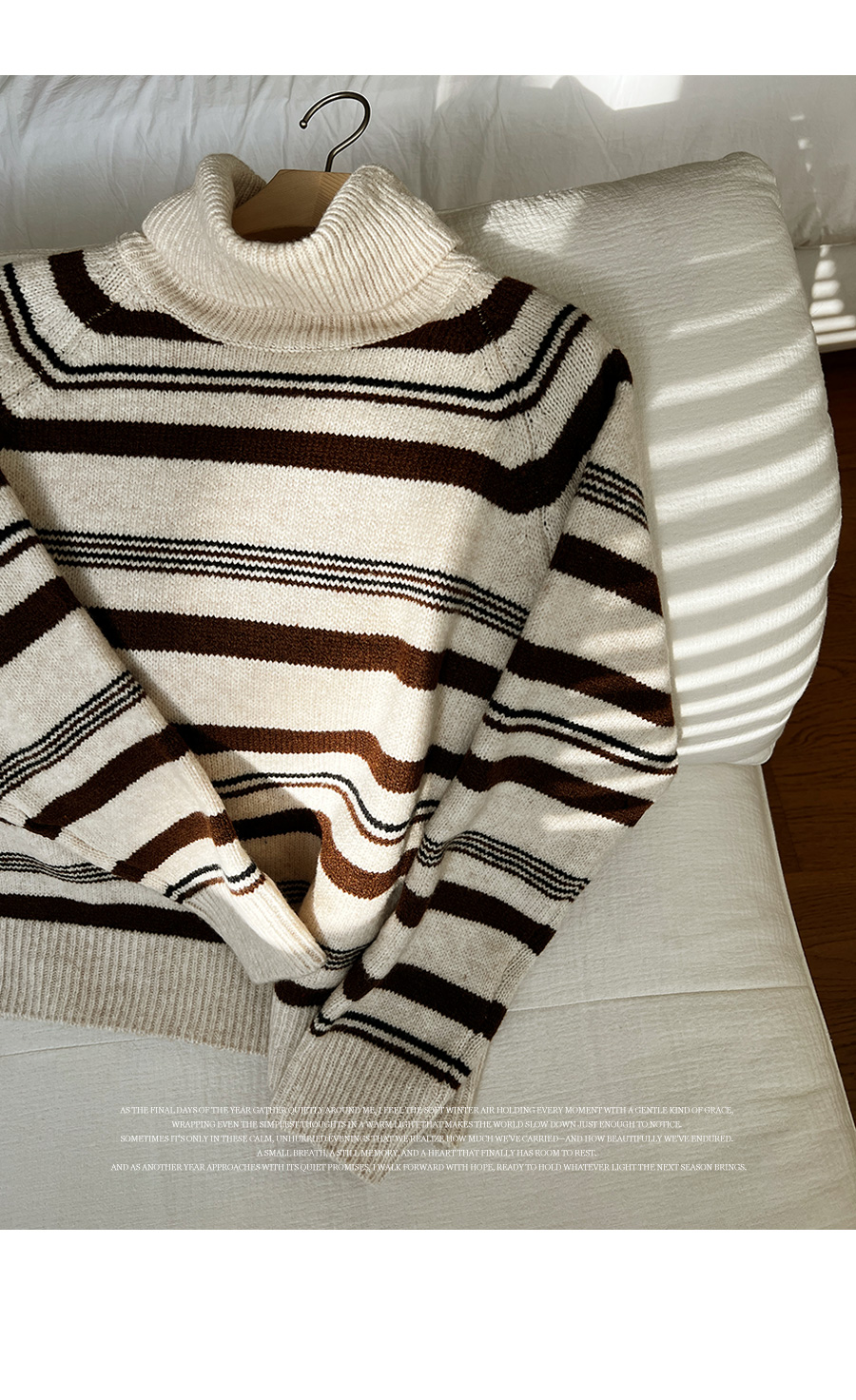 A turtleneck sweater with delicately colored stripes that provides warmth without being stuffy! (3 colors)