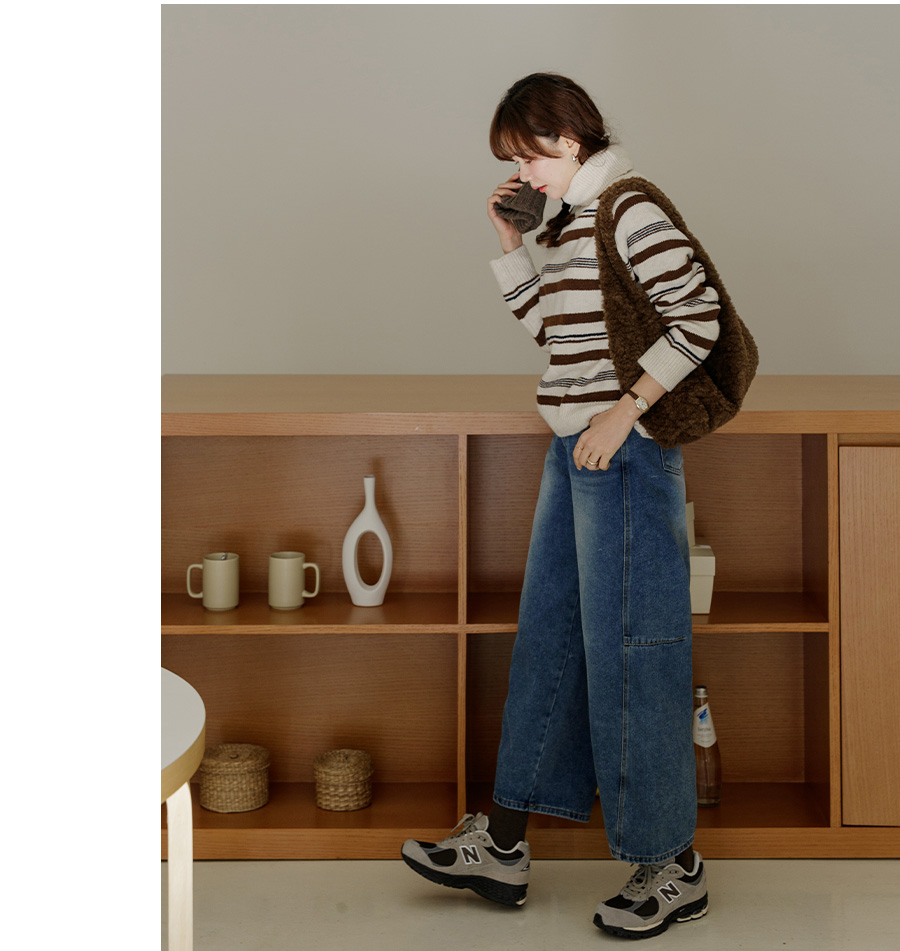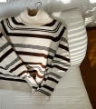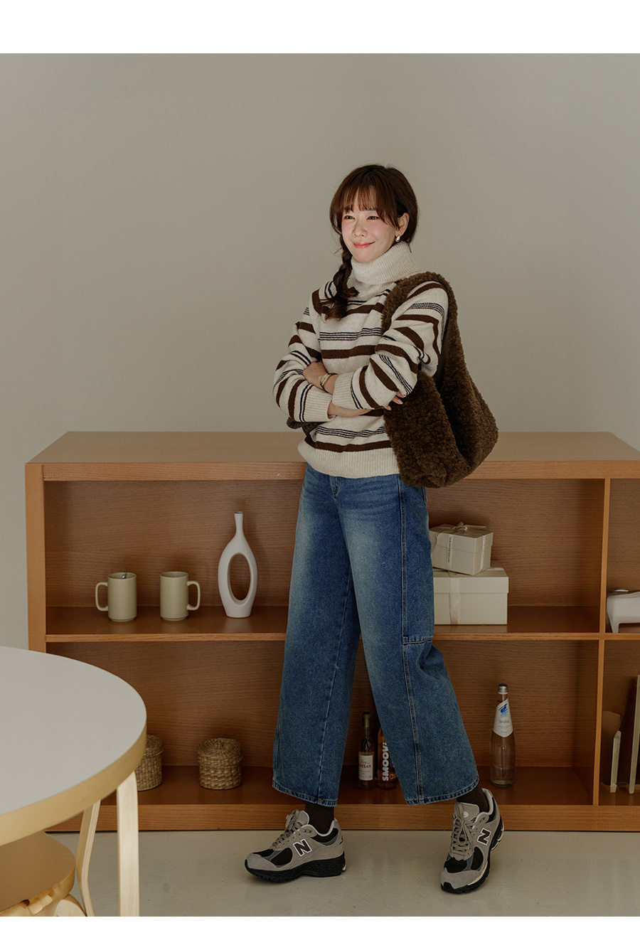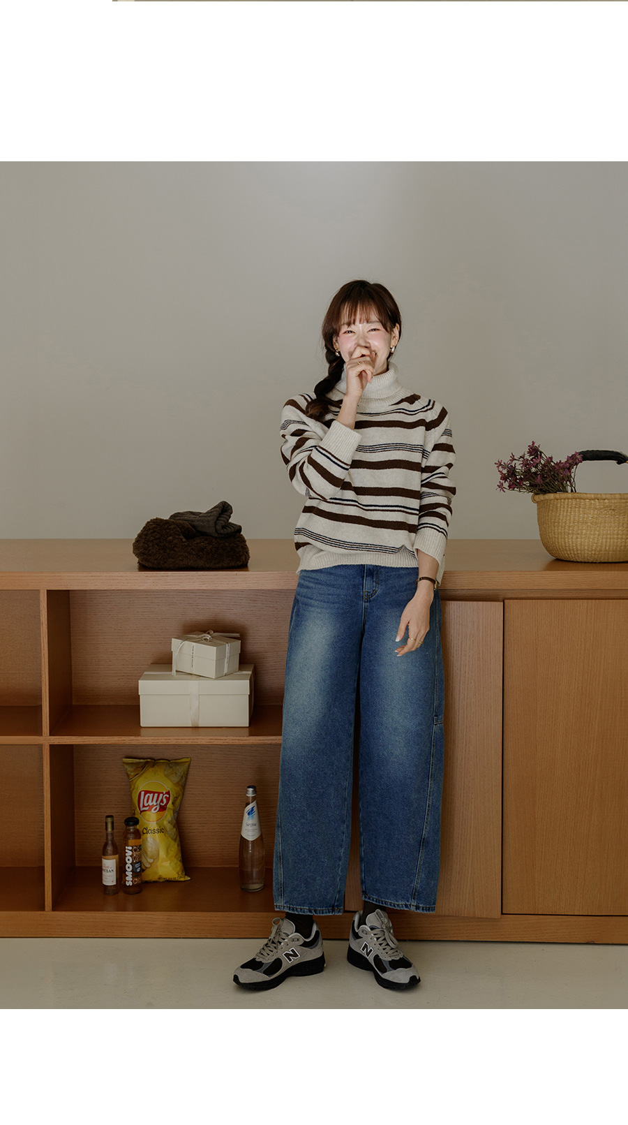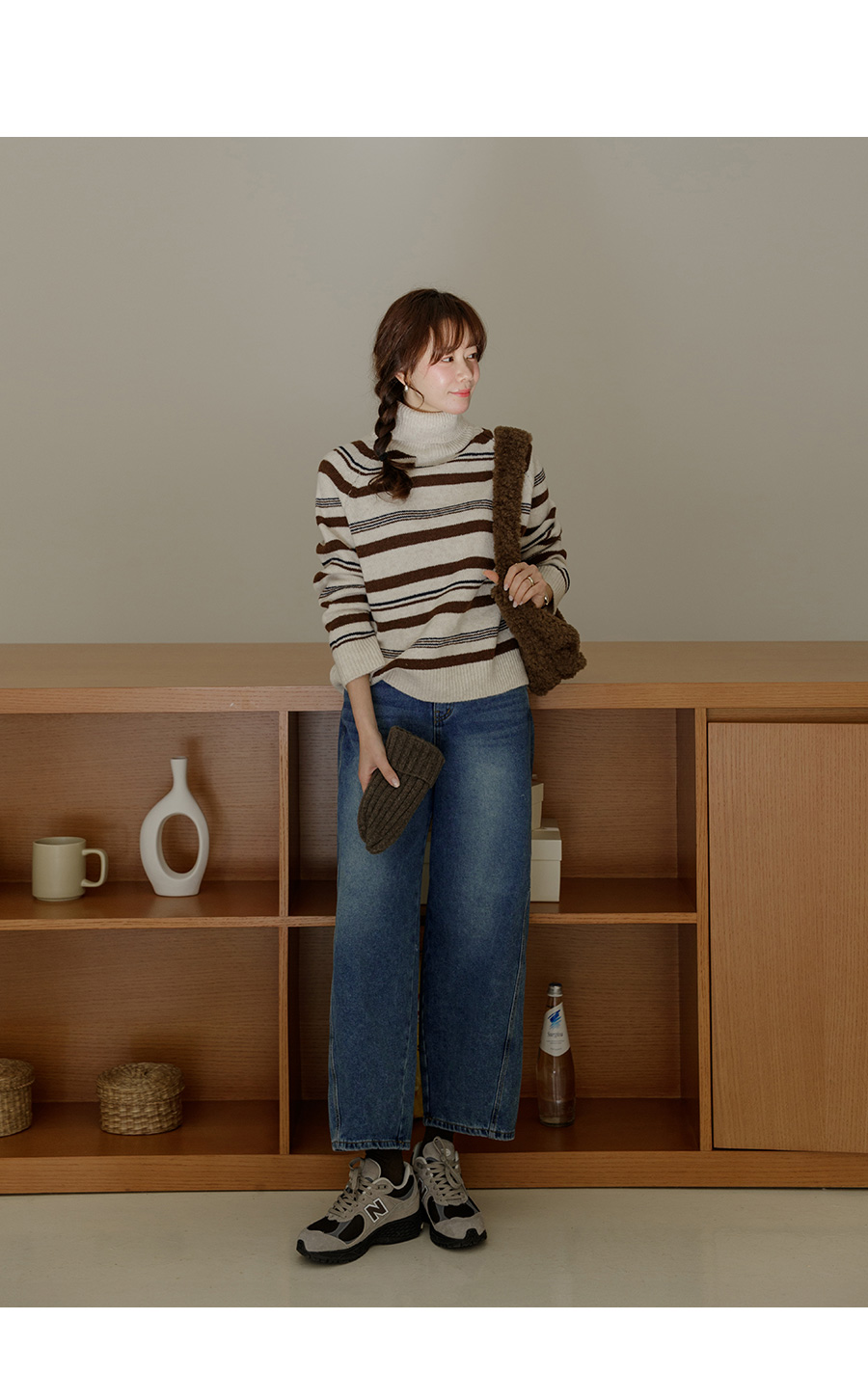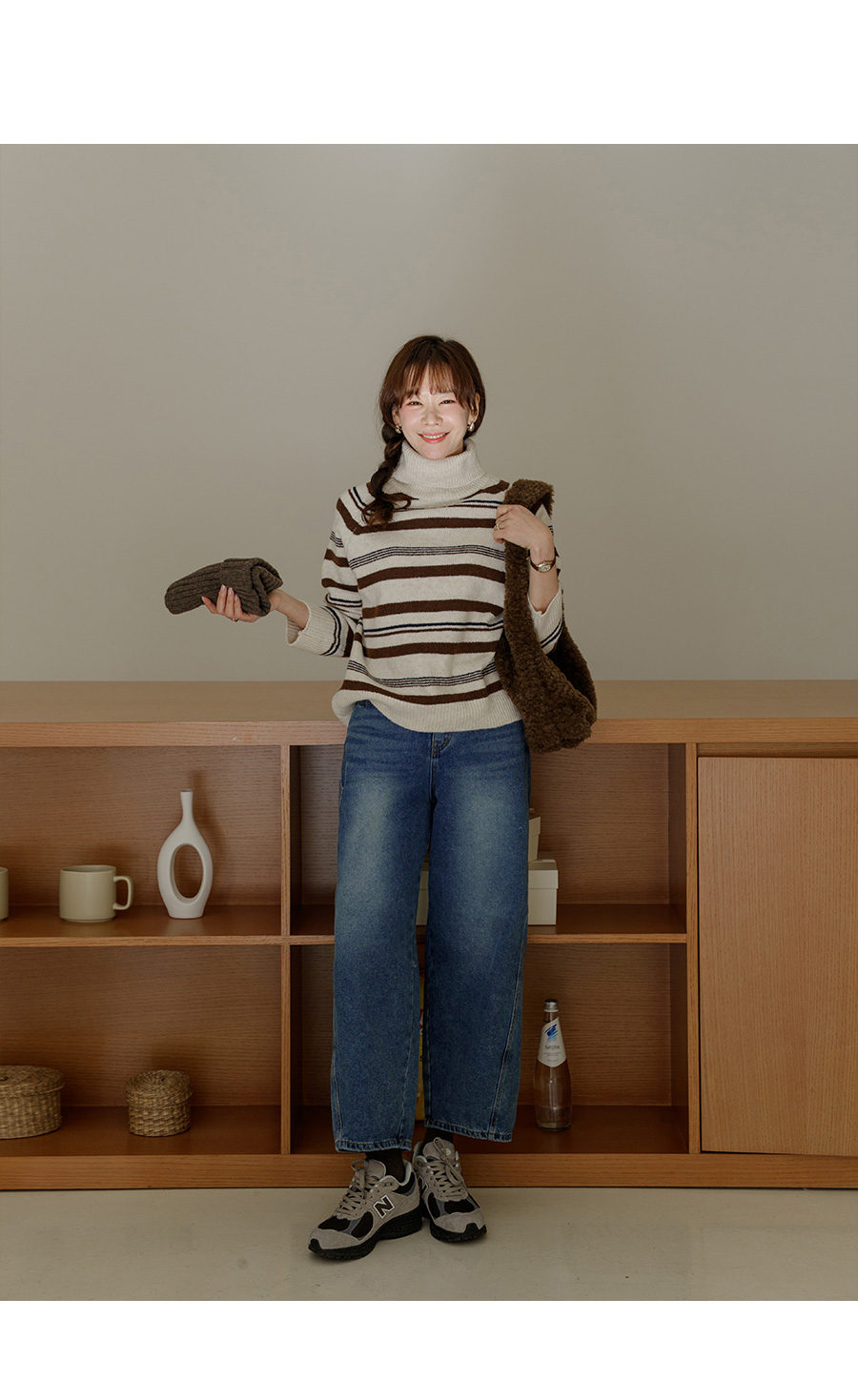 A turtleneck sweater with delicately colored stripes that provides warmth without being stuffy! (3 colors)