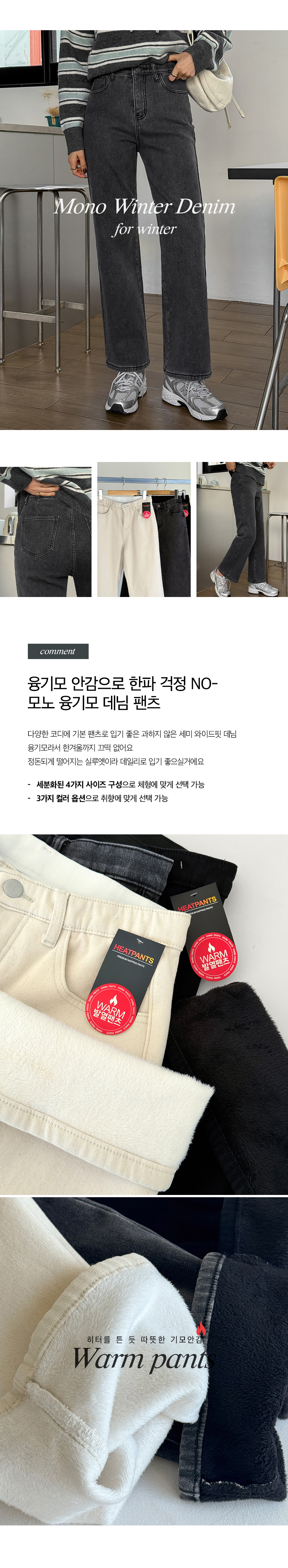 No more worries about cold waves thanks to the fleece lining! A straight-cut denim perfect for everyday wear (3 colors / S~XL)