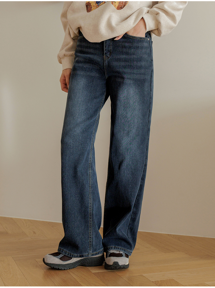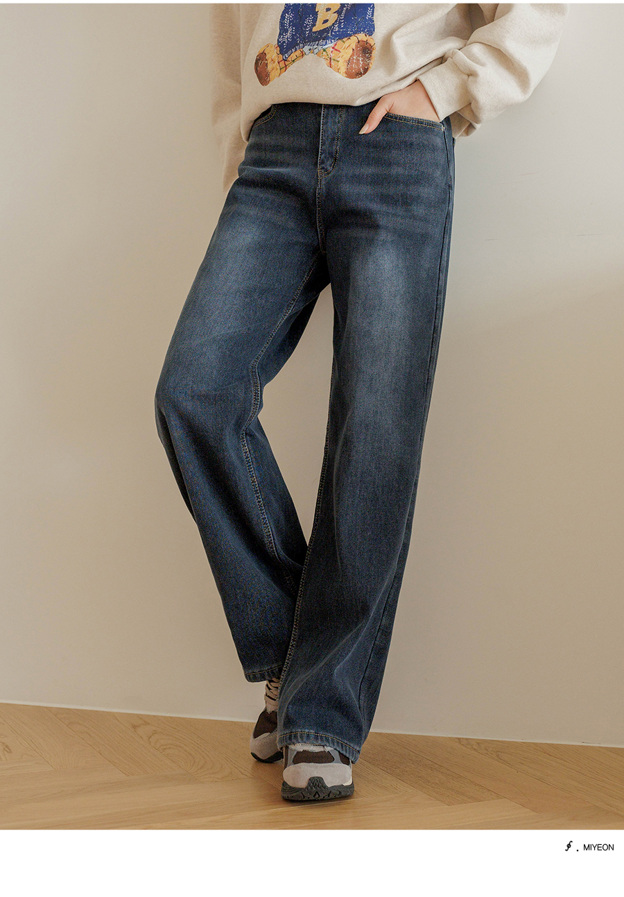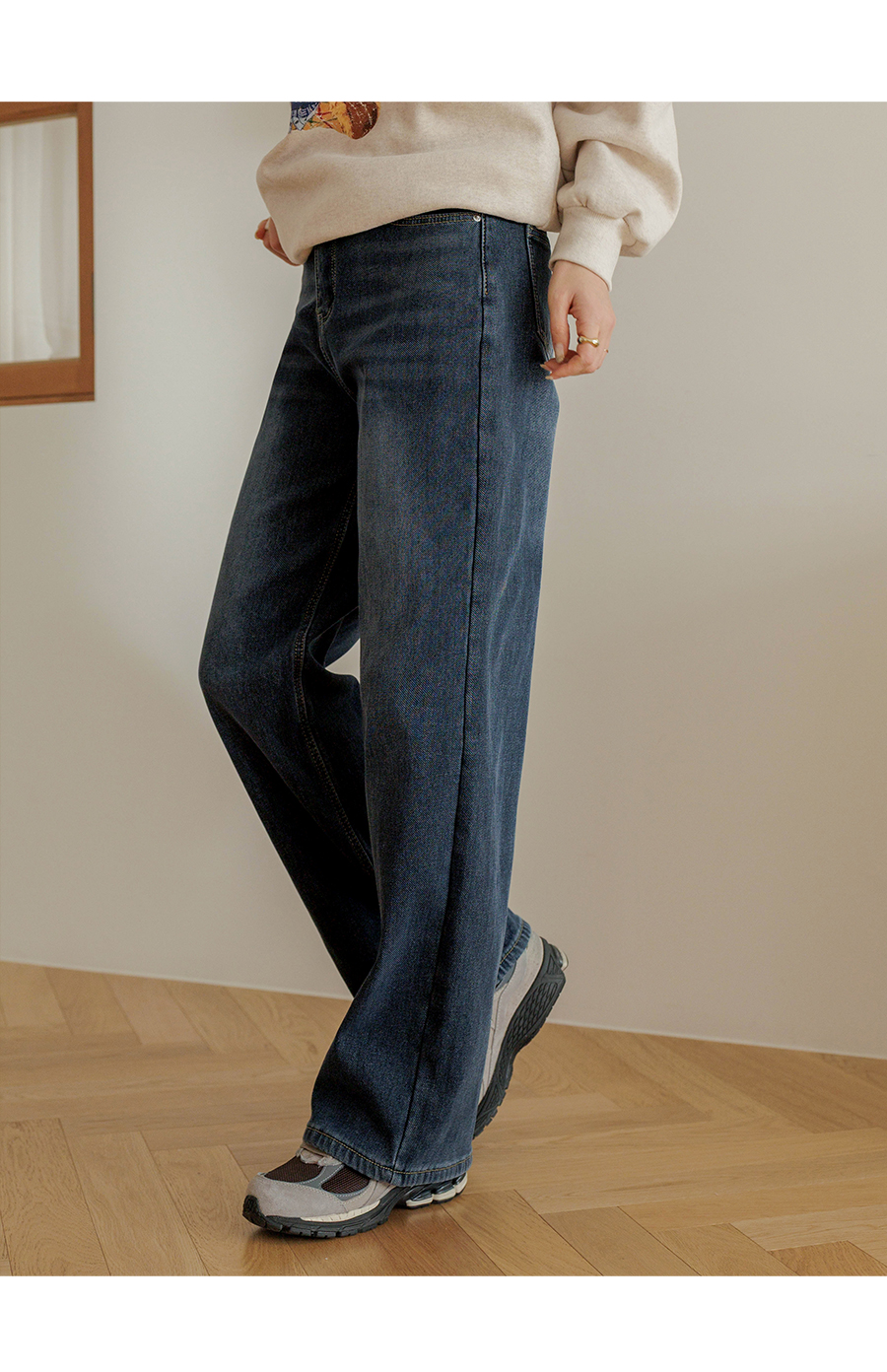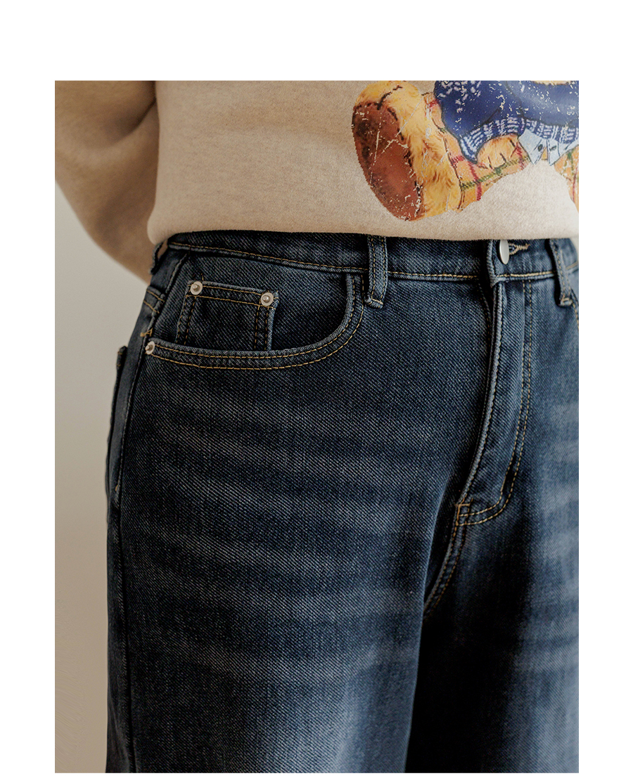 A wide fit that makes you look taller while also hiding flab! Warm fleece denim that keeps you warm even in the middle of winter (2 colors / S~L / Short, Long)