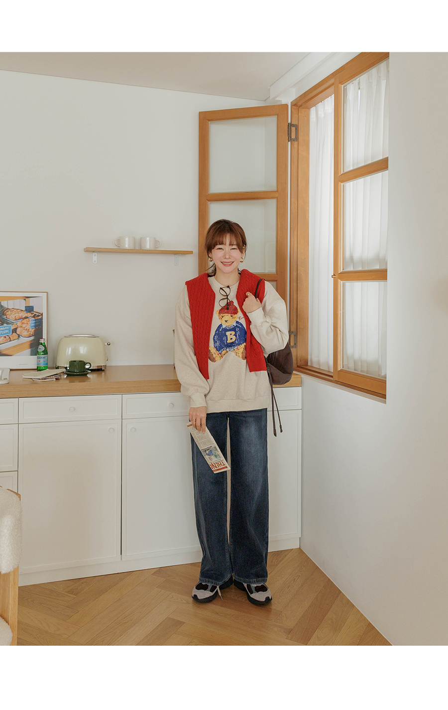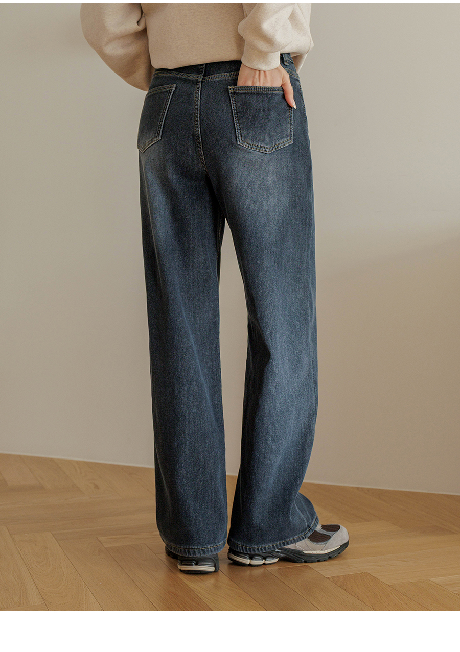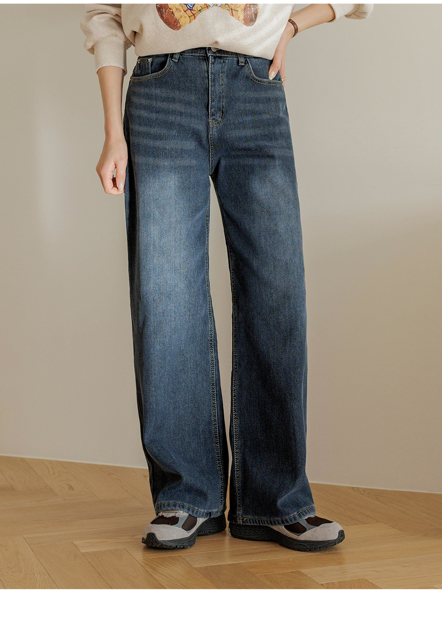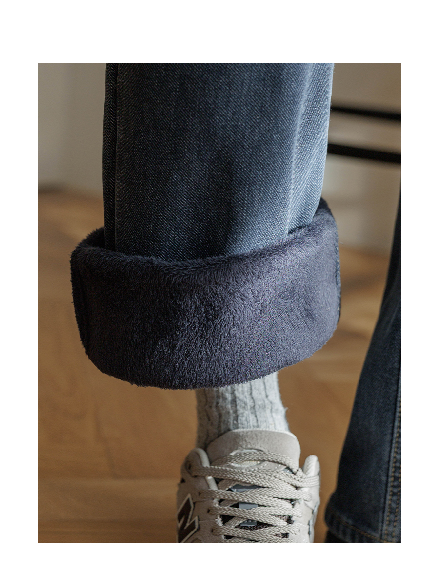 A wide fit that makes you look taller while also hiding flab! Warm fleece denim that keeps you warm even in the middle of winter (2 colors / S~L / Short, Long)