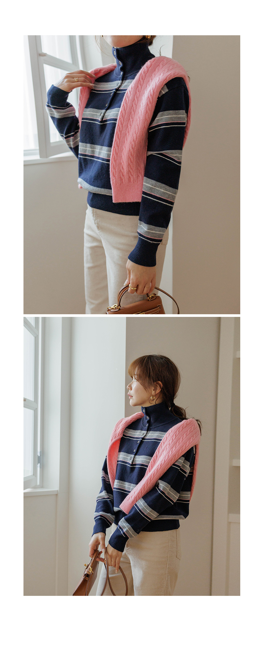 A simple yet versatile item that adds a pop of color. The high-neck design makes it perfect for wearing all winter long! (3 colors)