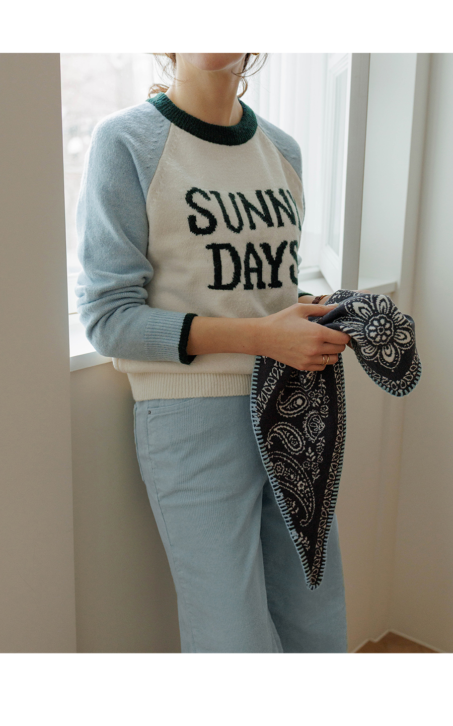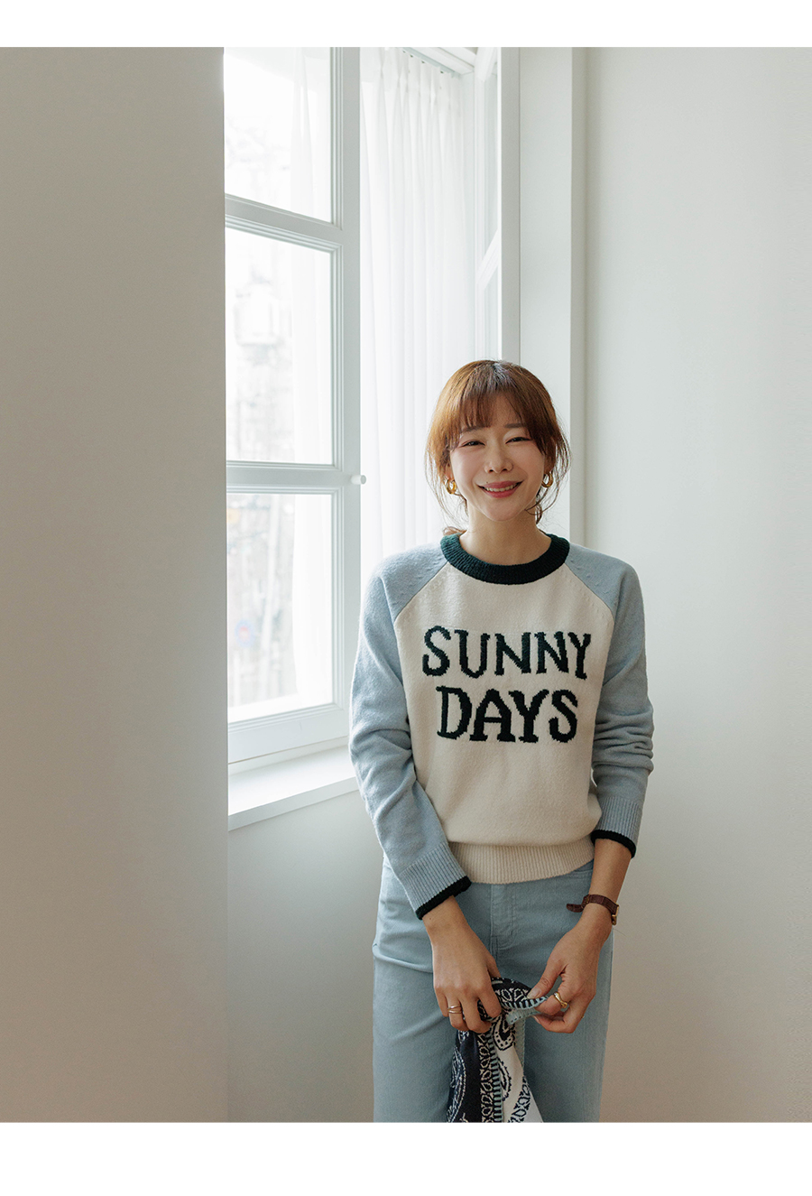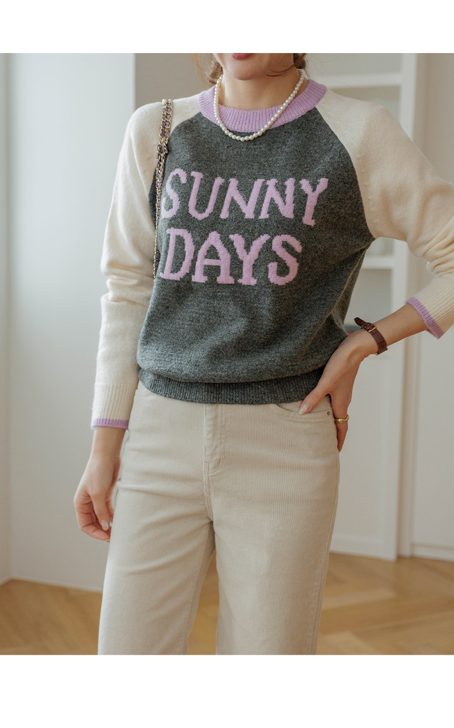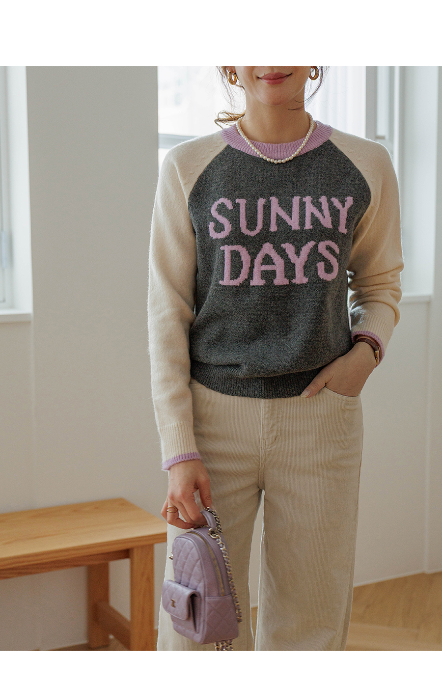 통통튀는 배색 소매가 매력적인 니트에요