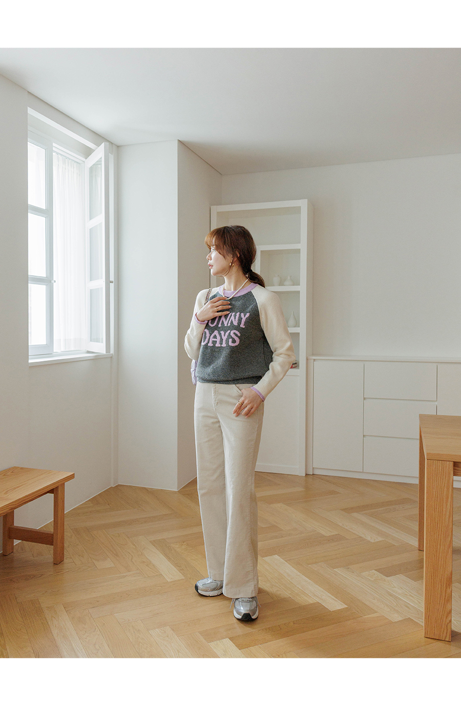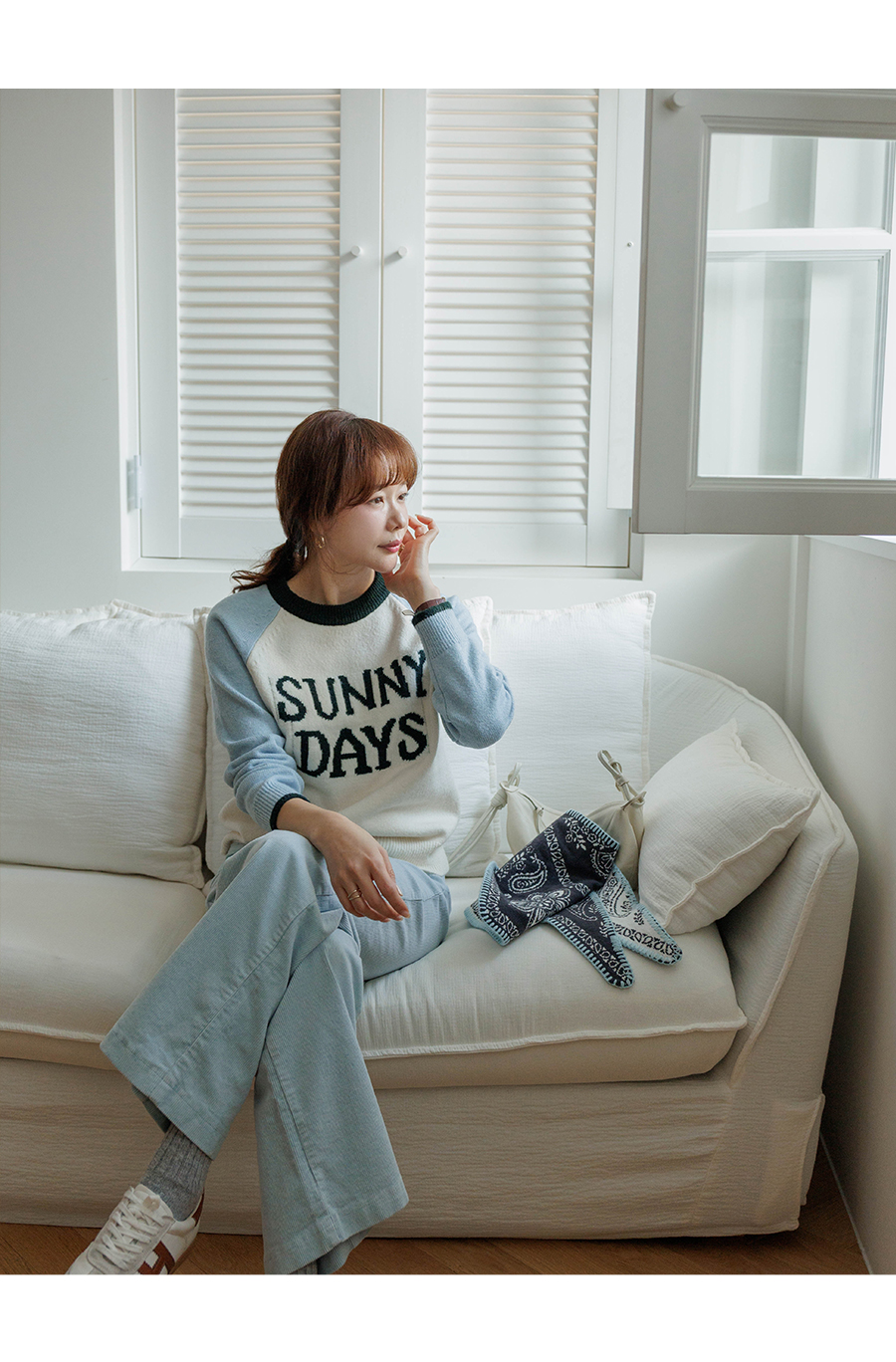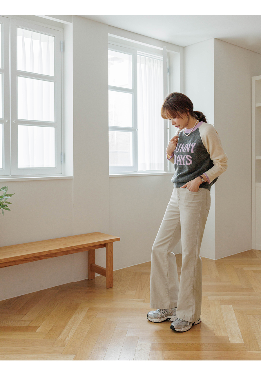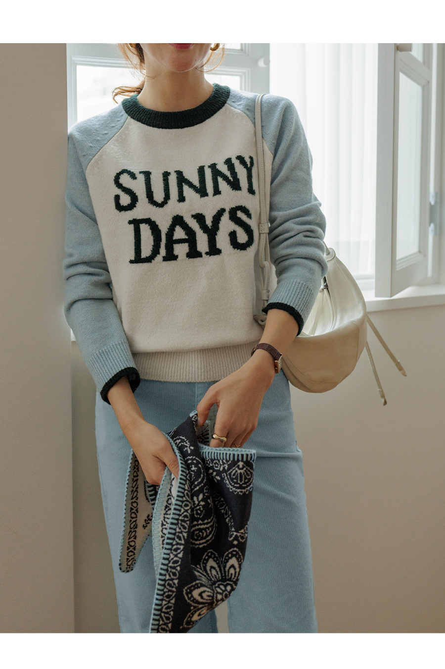 통통튀는 배색 소매가 매력적인 니트에요