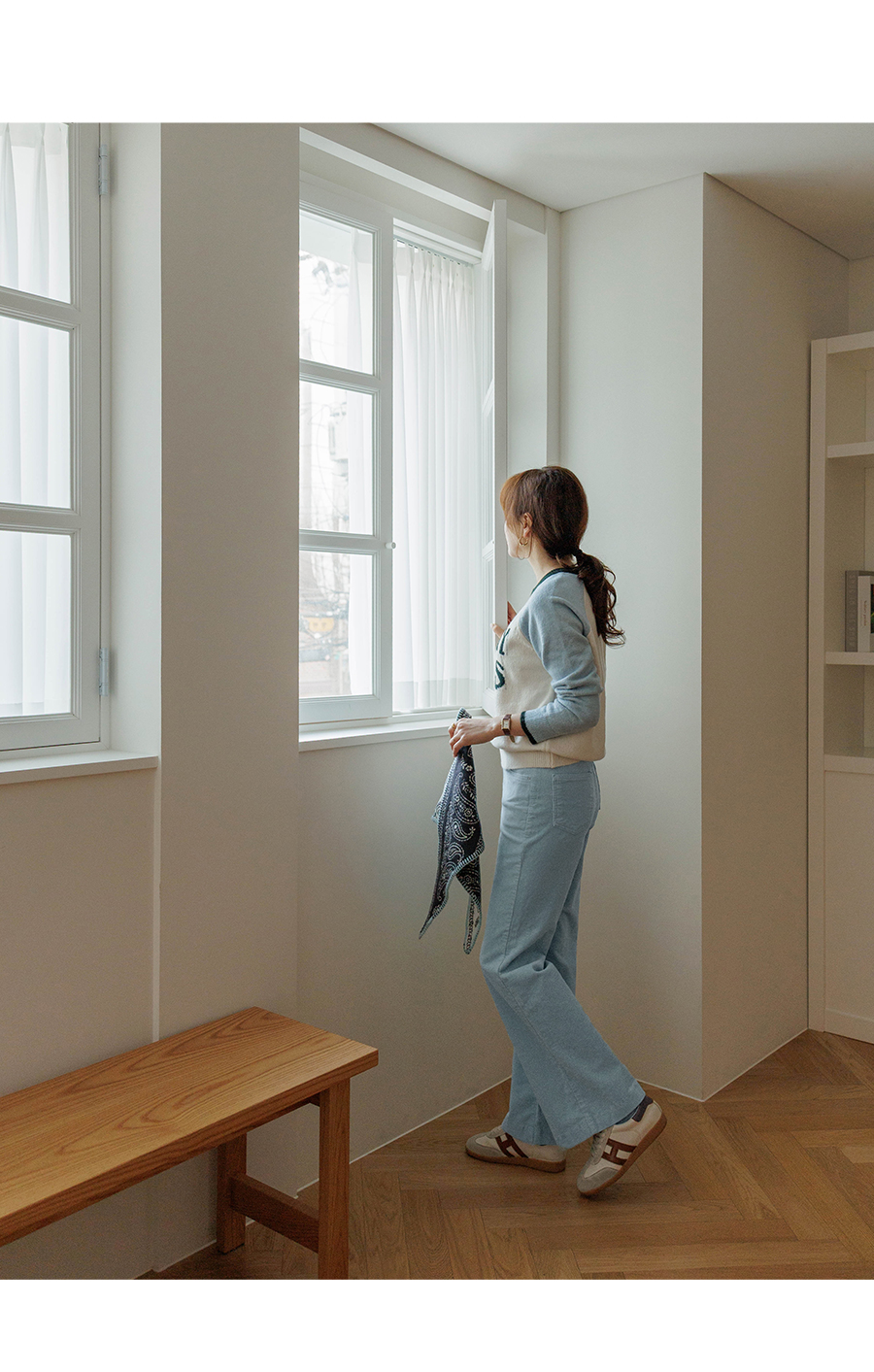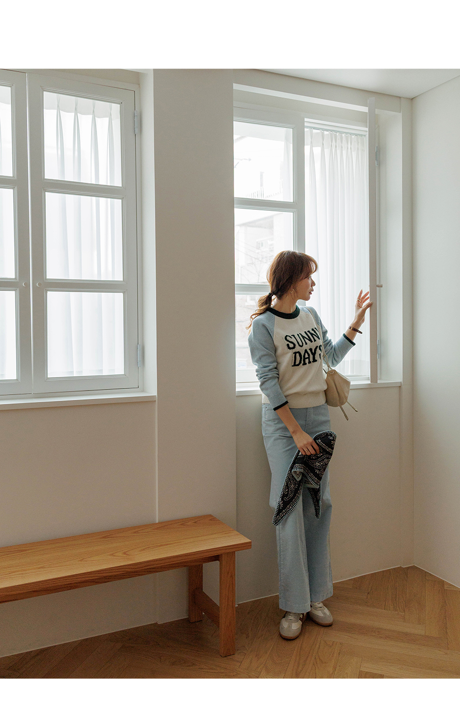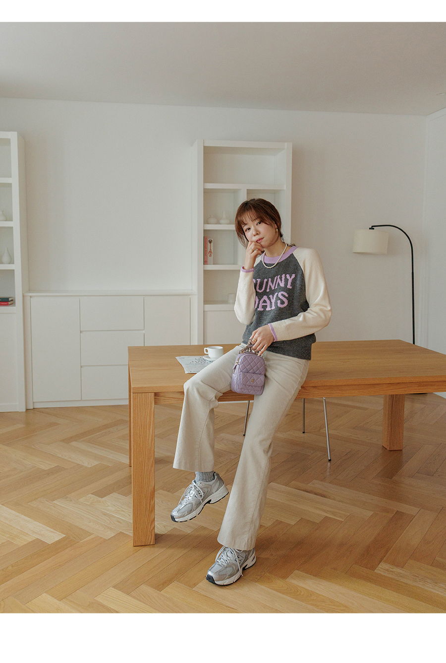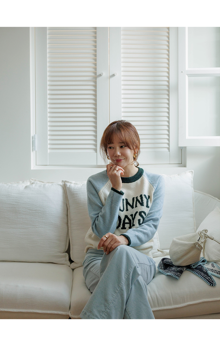 통통튀는 배색 소매가 매력적인 니트에요