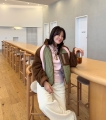 포인트로 입기 좋은 비비드한 컬러배색의 소매 믹스매치