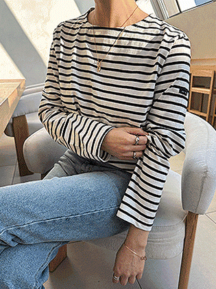 • A neat and comfortable striped long-sleeved T-shirt made of sturdy cotton material that has been tumble-washed. A great daily key point. (6 colors)