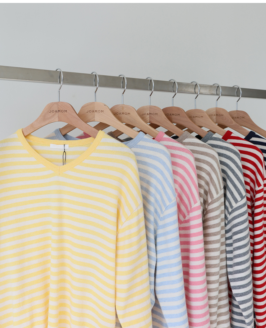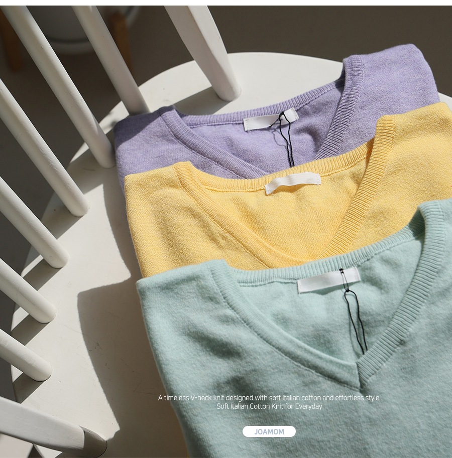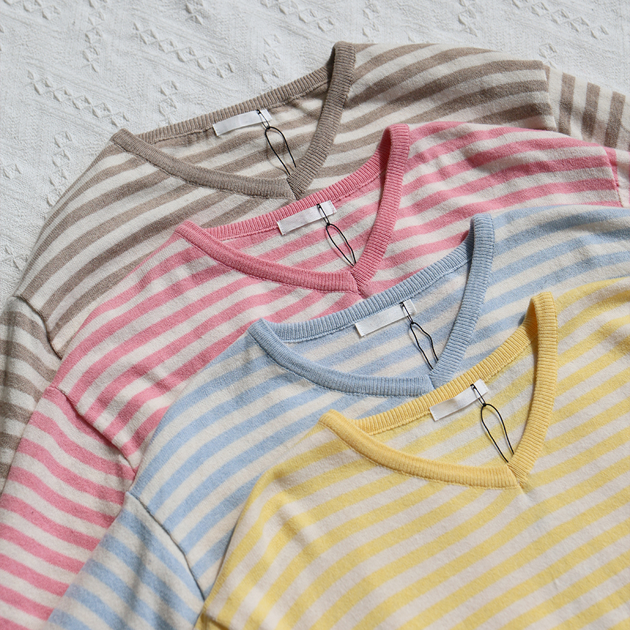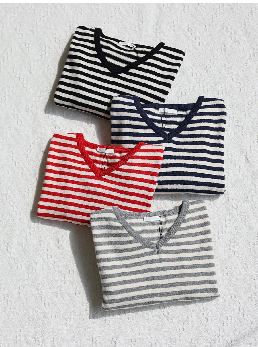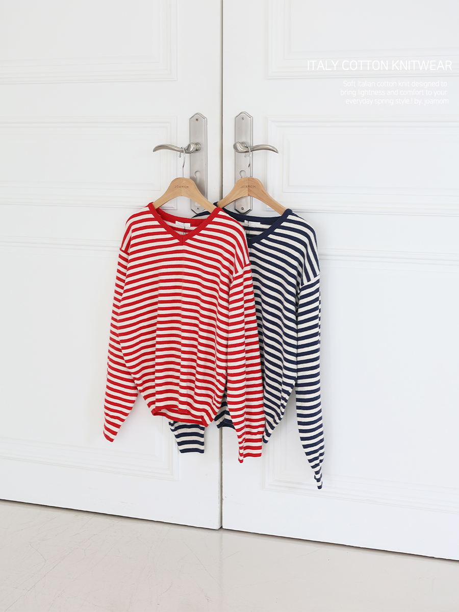 Lollipop V-neck Cotton Knit (2 Types: Striped/Solid)