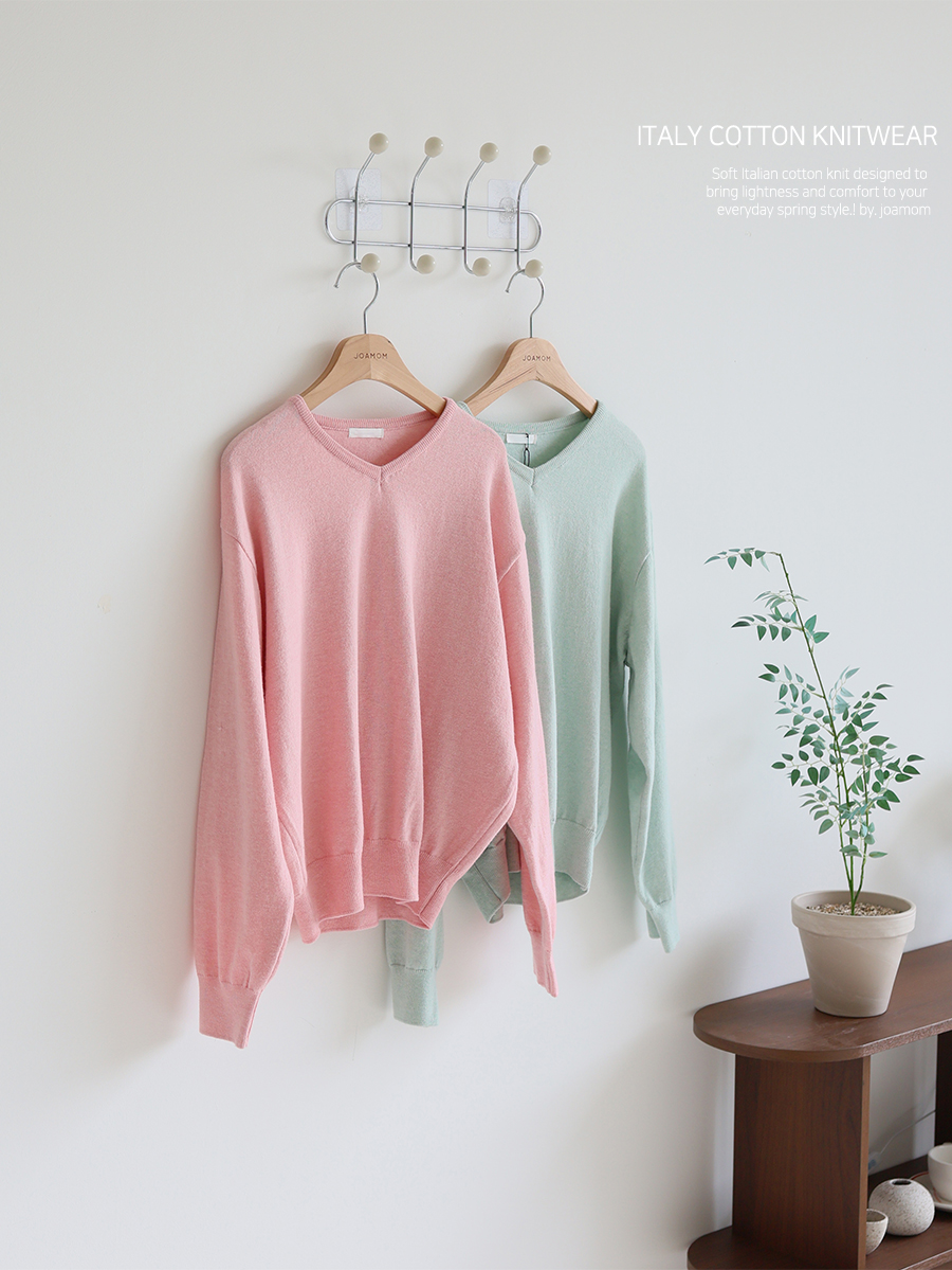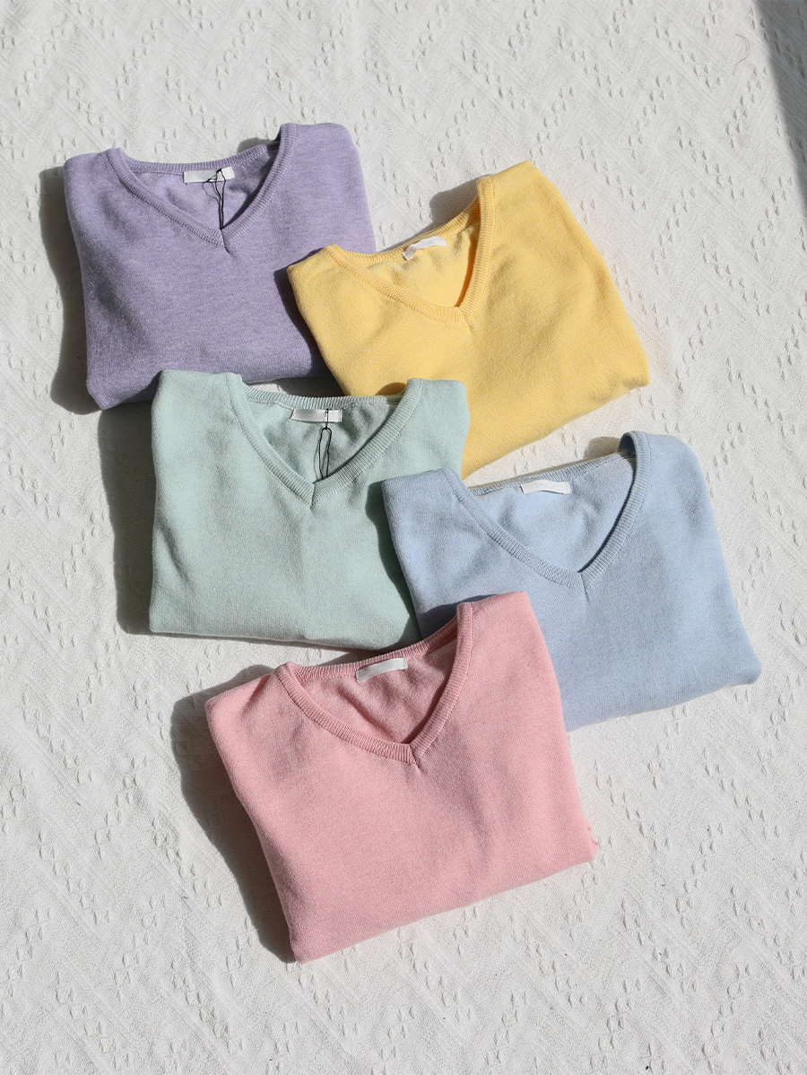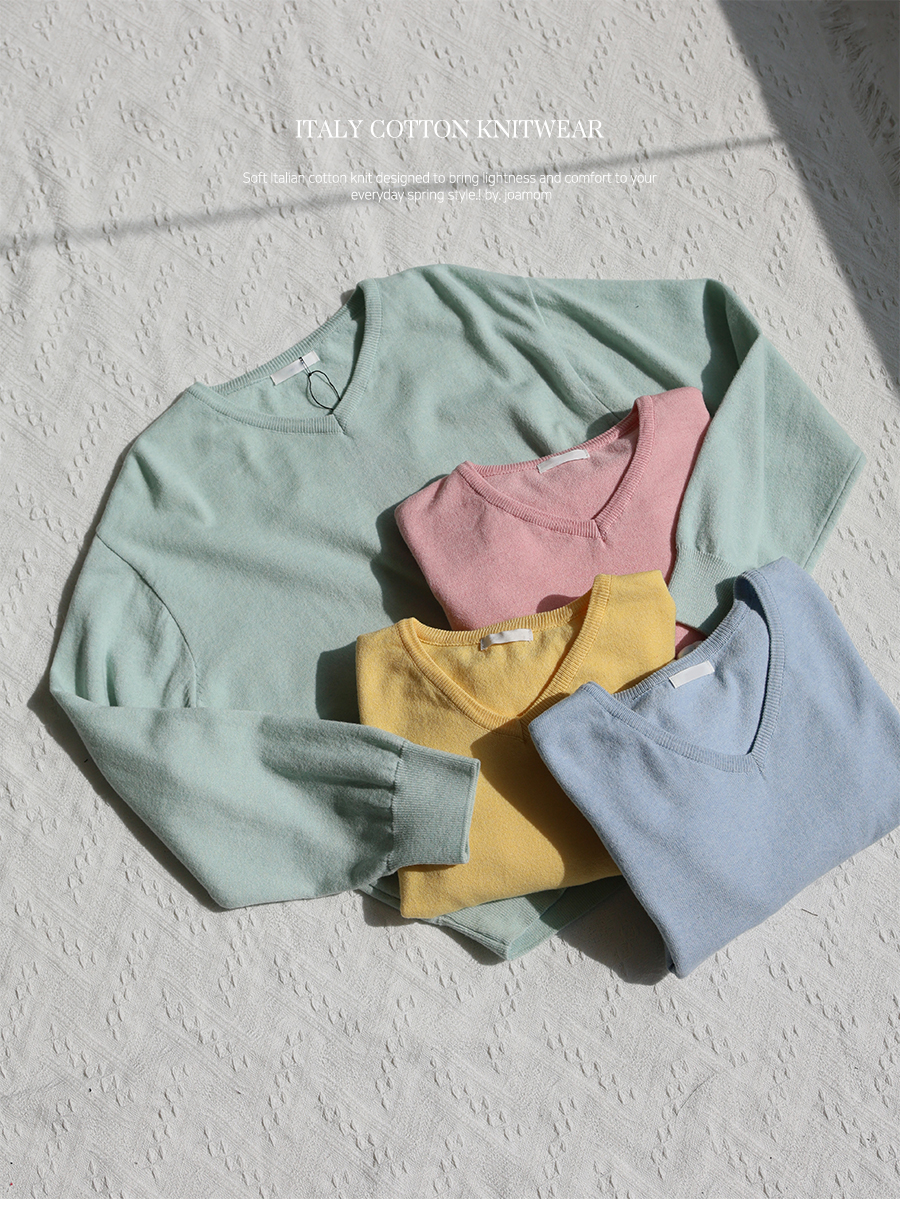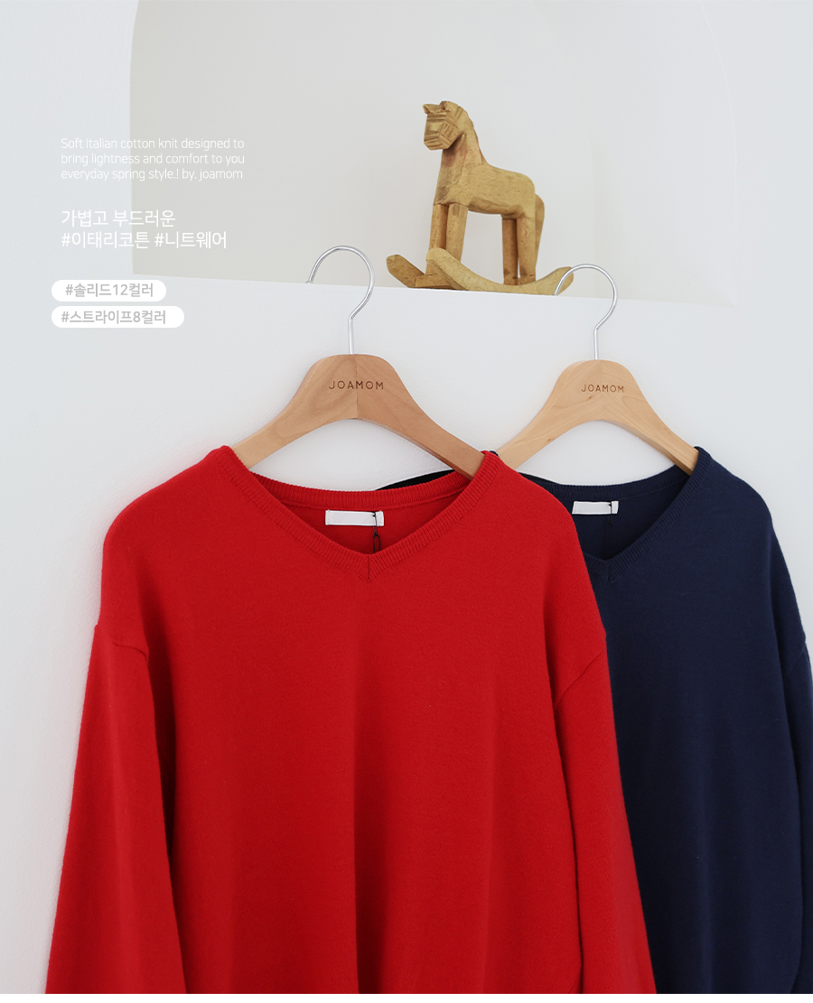 Lollipop V-neck Cotton Knit (2 Types: Striped/Solid)