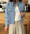 Smooth denim semi-cropped shirt