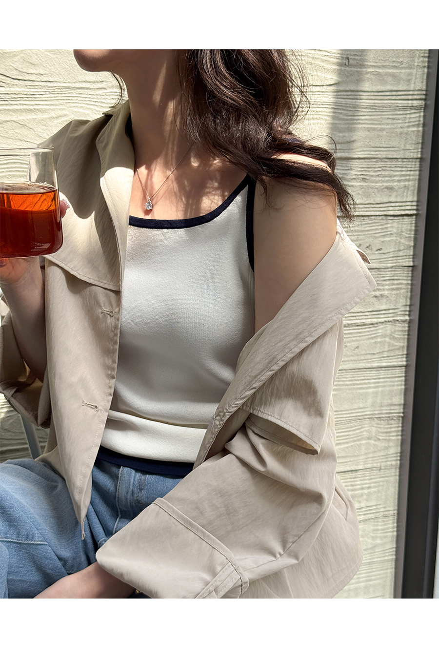 넥라인, 밑단 배색으로 세련된 느낌