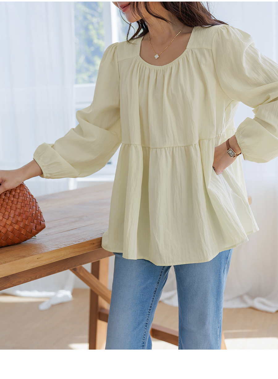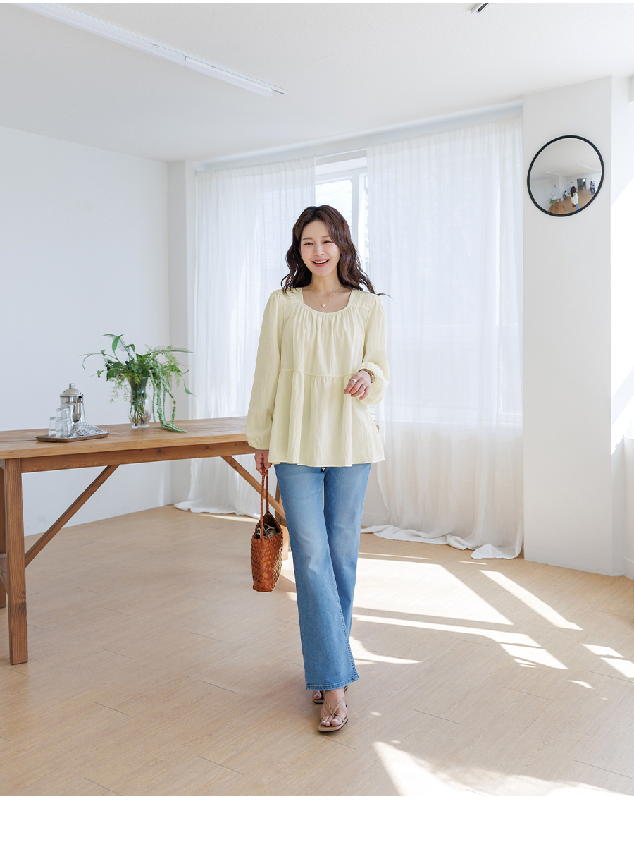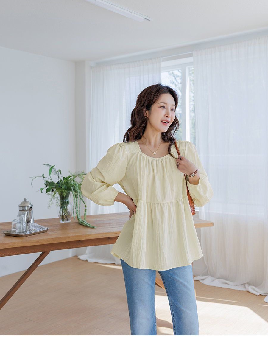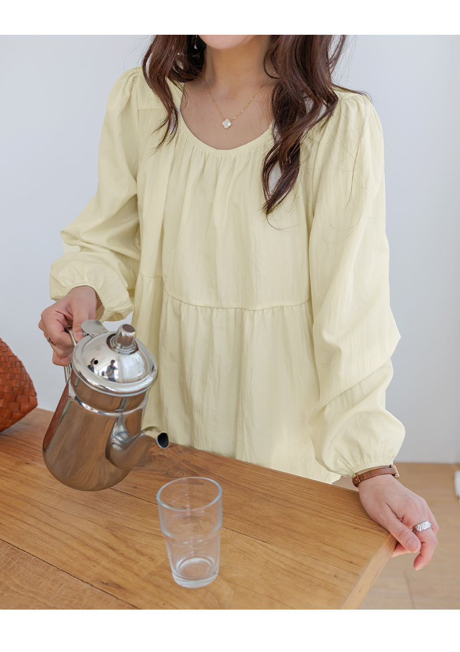 A light and lovely blouse that makes you look delicate the moment you put it on♡ Naturally covers your stomach and hips (3 colors)