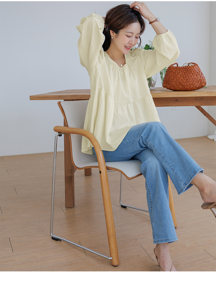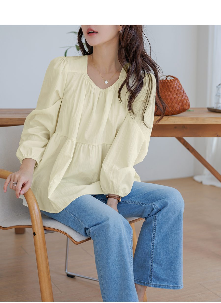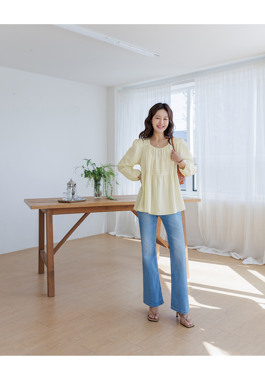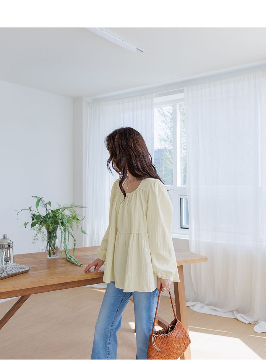 A light and lovely blouse that makes you look delicate the moment you put it on♡ Naturally covers your stomach and hips (3 colors)
