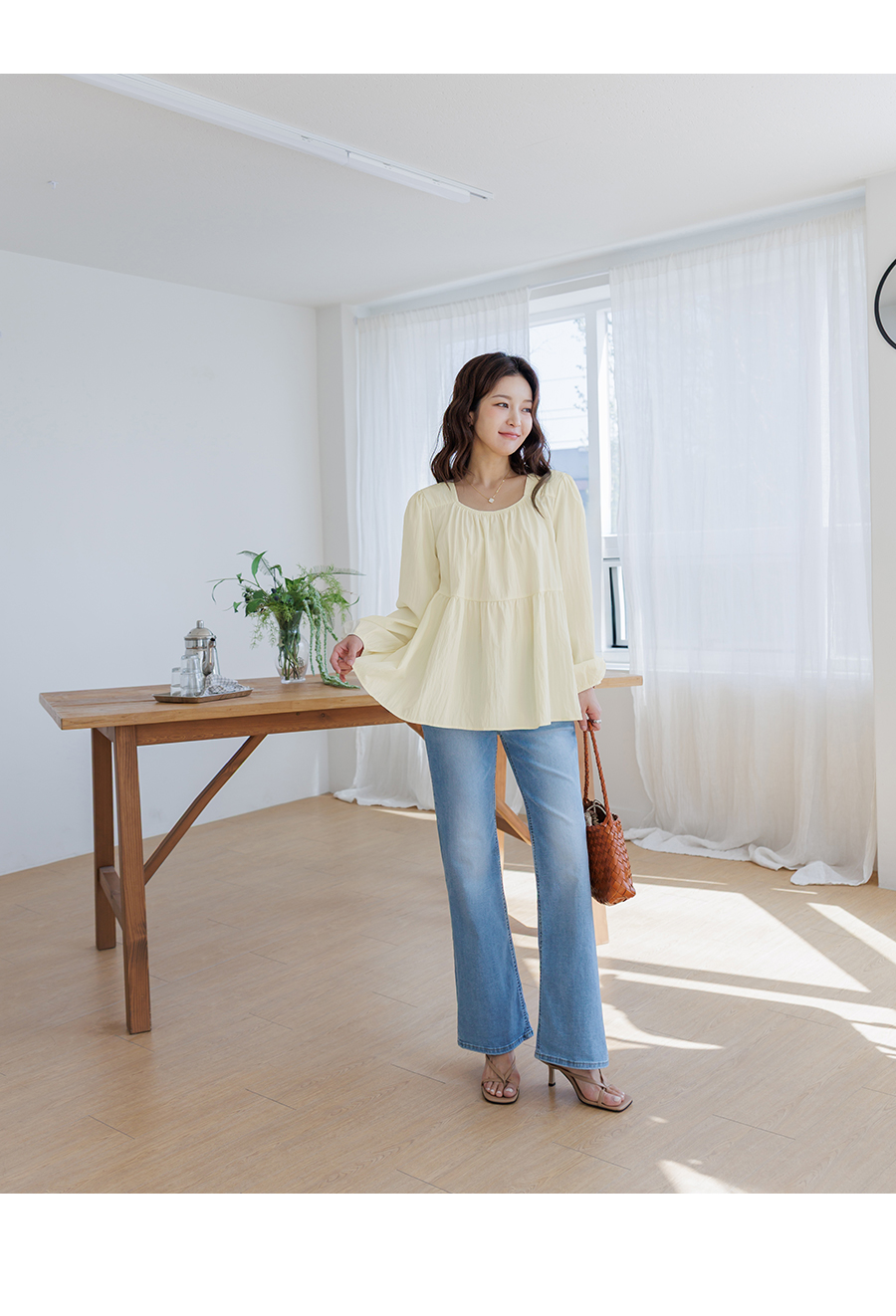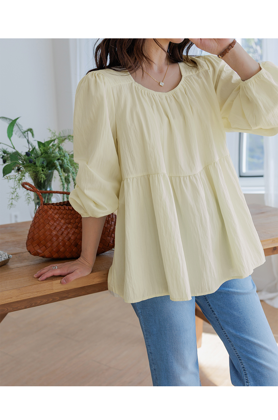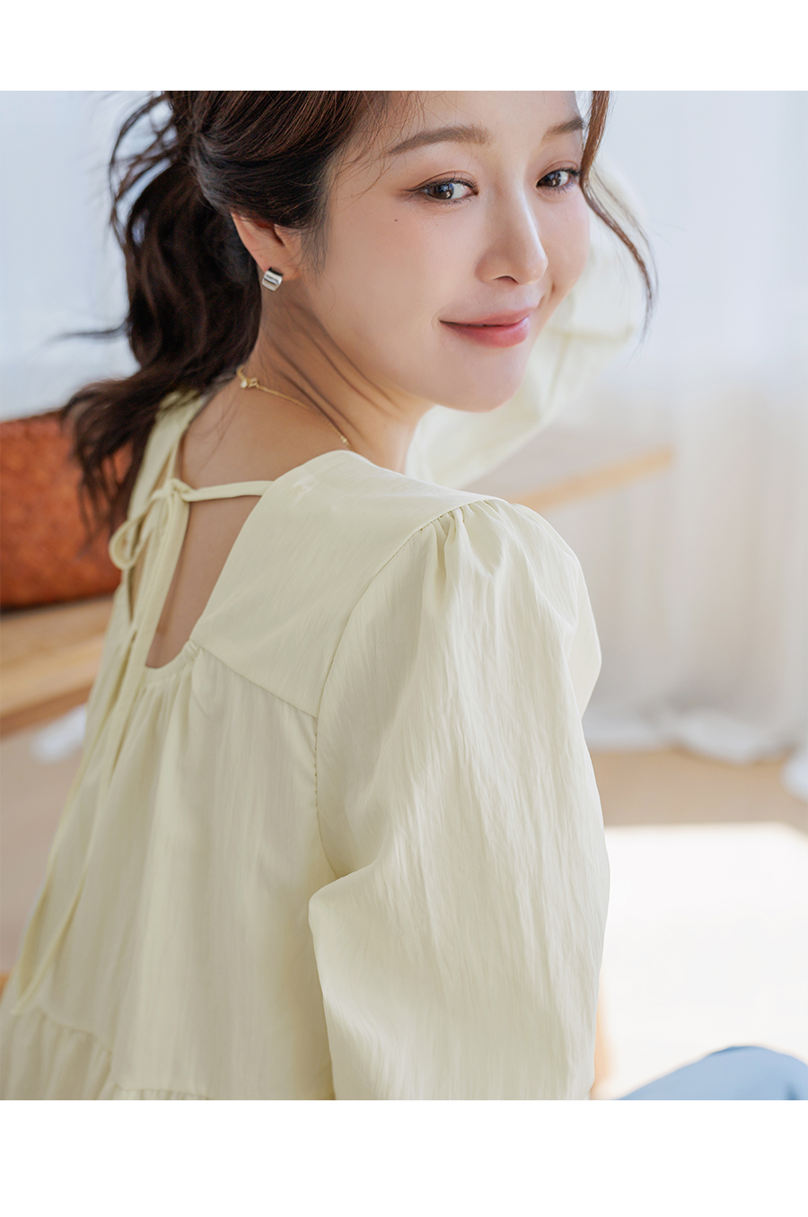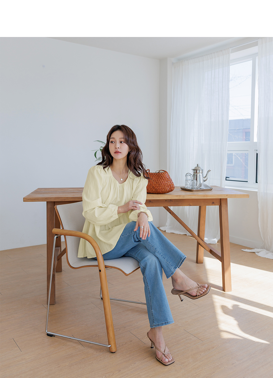 가볍고 여리한 분위기가 돋보이는 러블리 무드의 블라우스