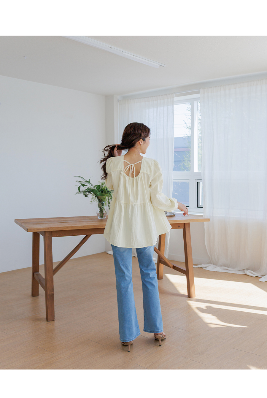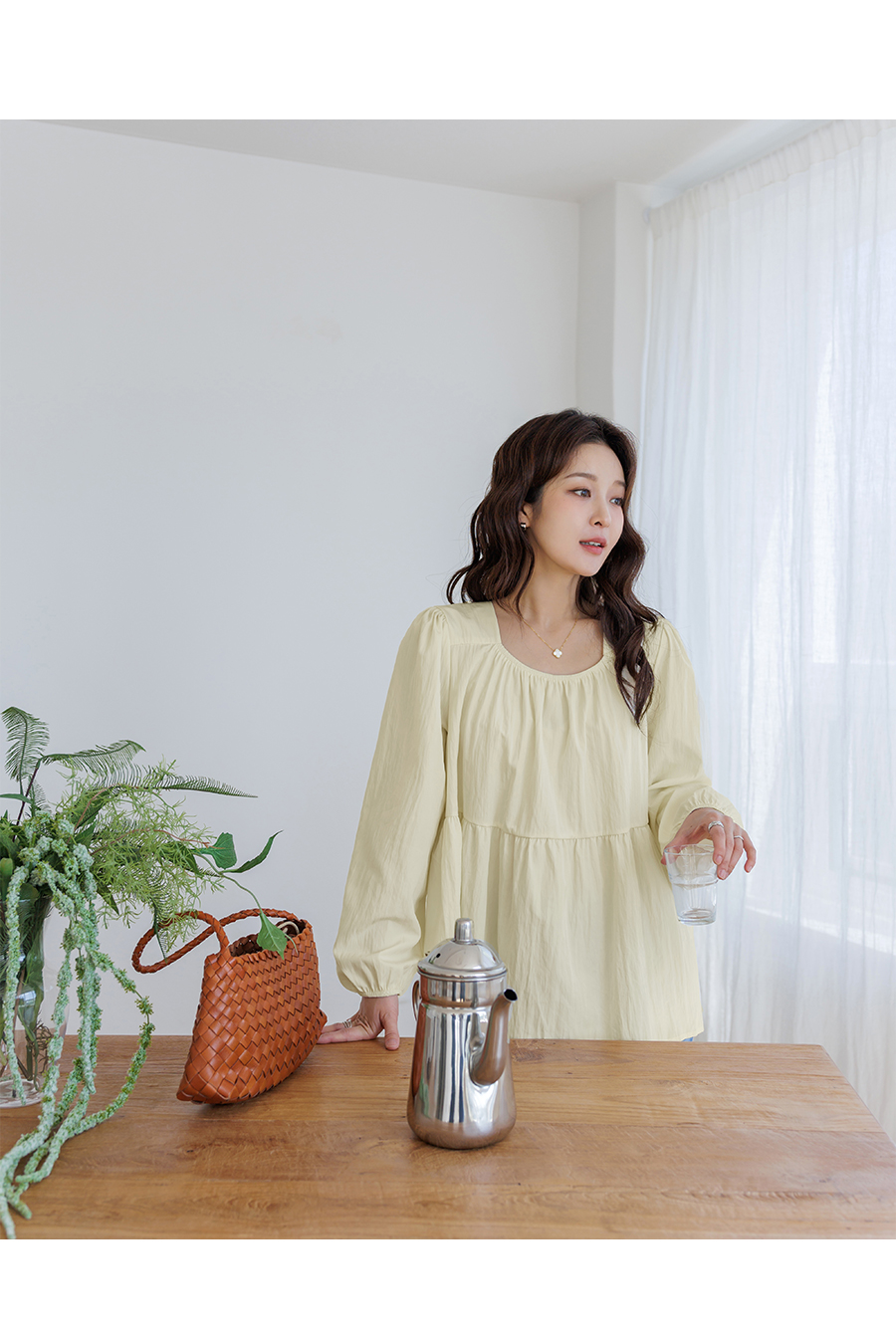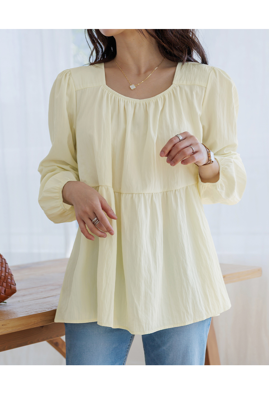 가볍고 여리한 분위기가 돋보이는 러블리 무드의 블라우스
