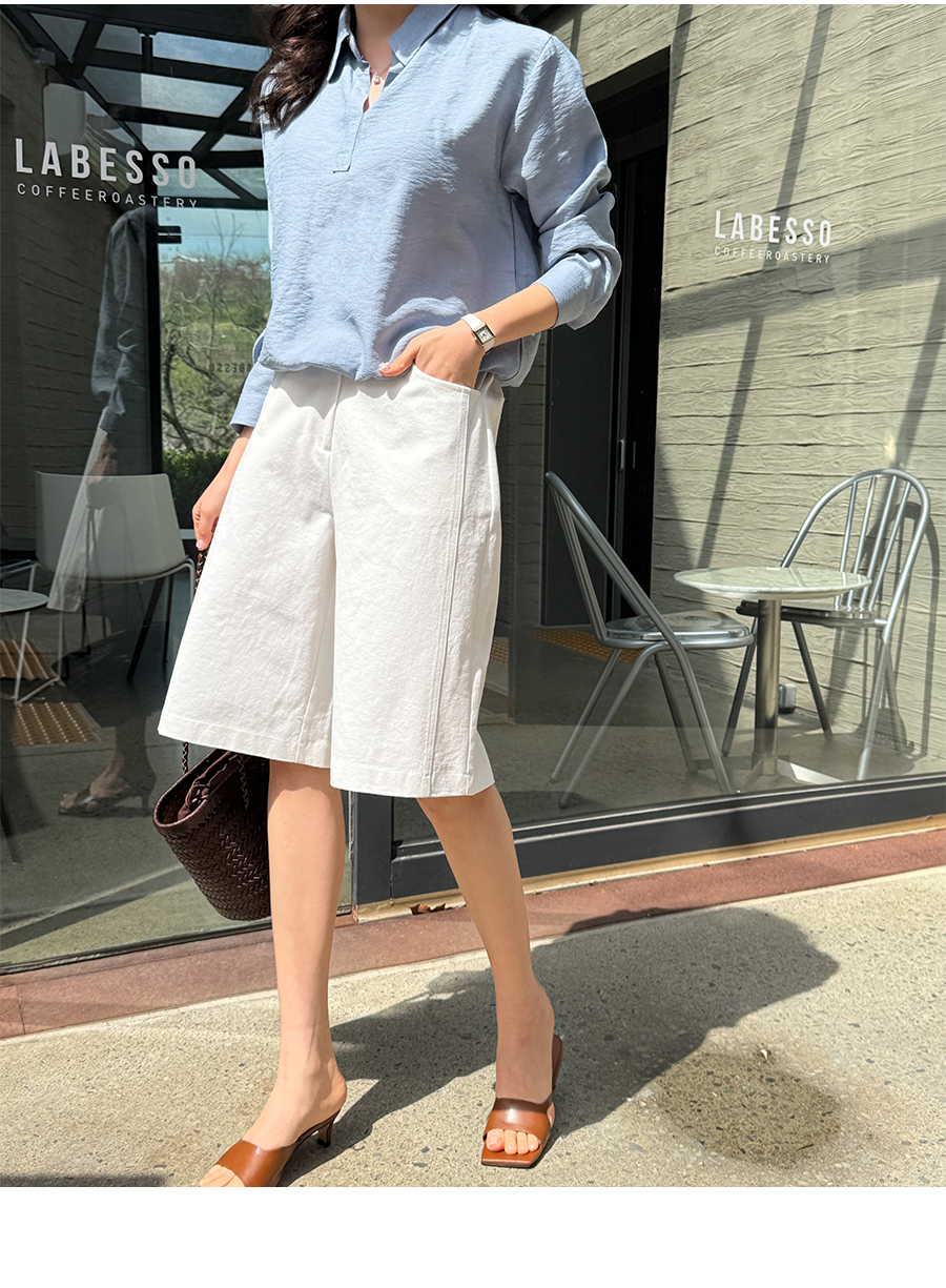 편안하면서 트렌디한 무드를 완성해주는 절개 버뮤다 데님