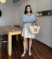 밑단 언밸런스 기장에 앞부분 세미 크롭으로 경쾌한 무드