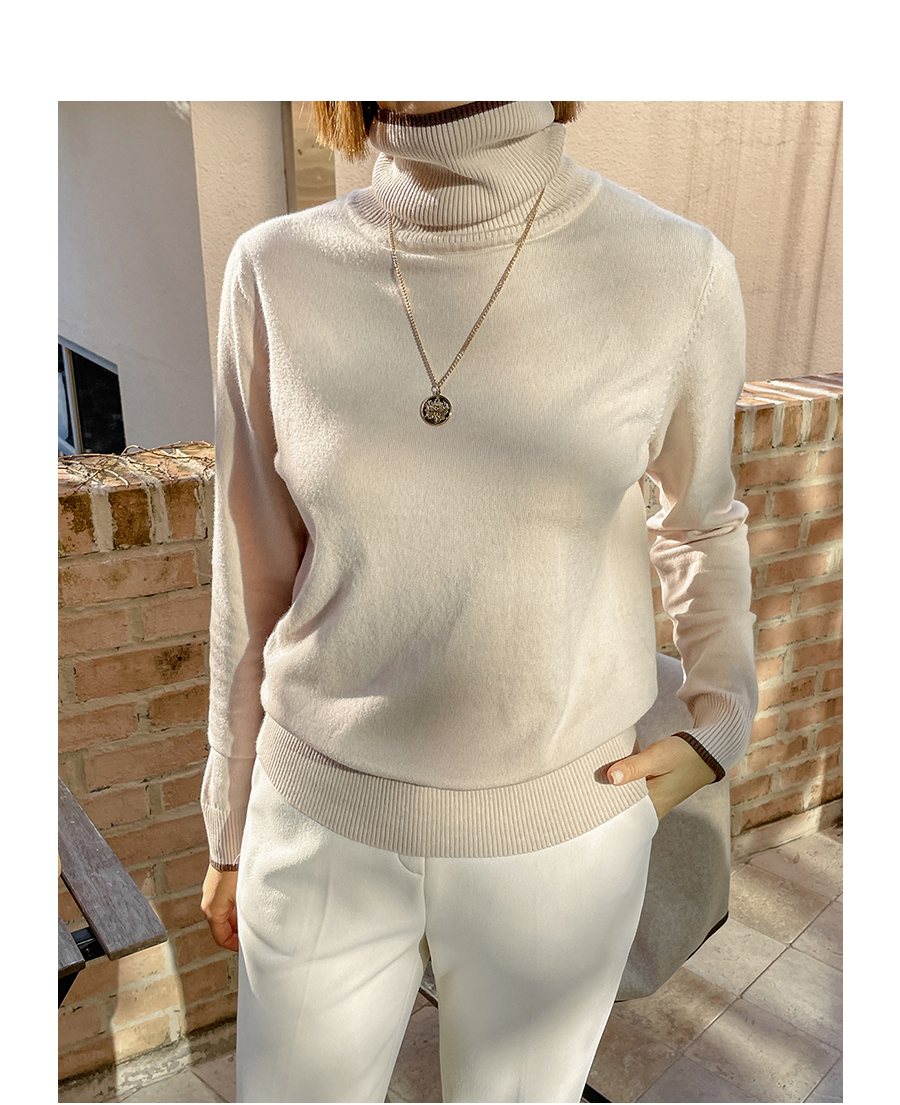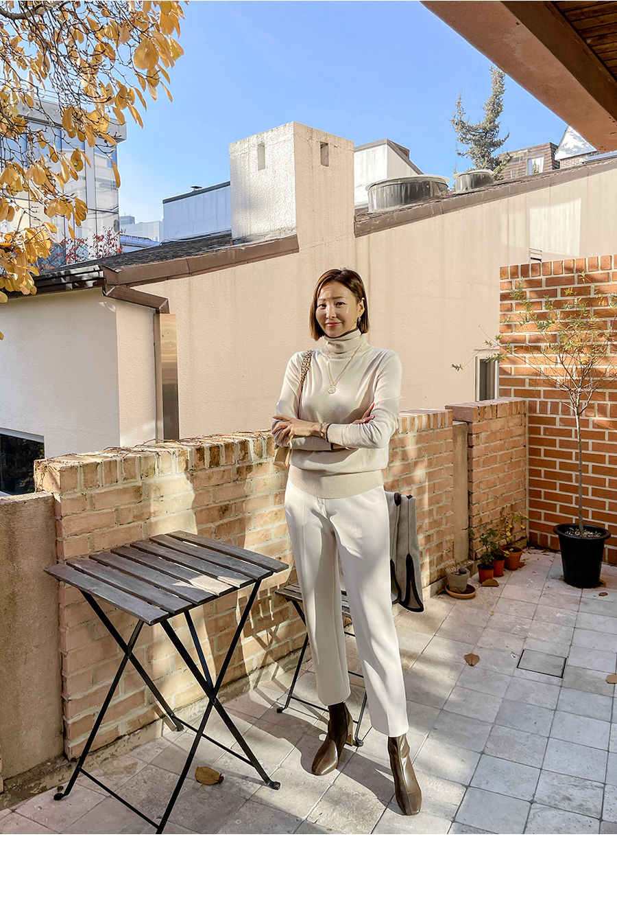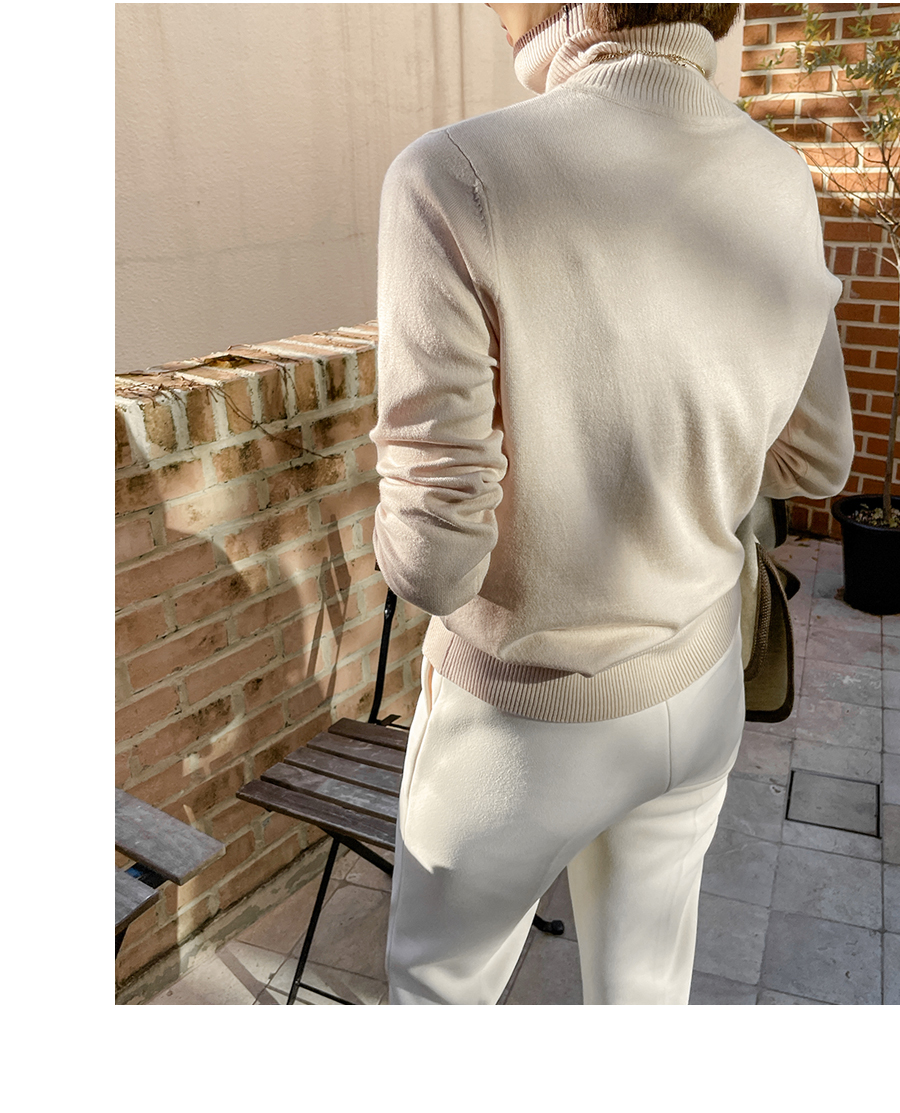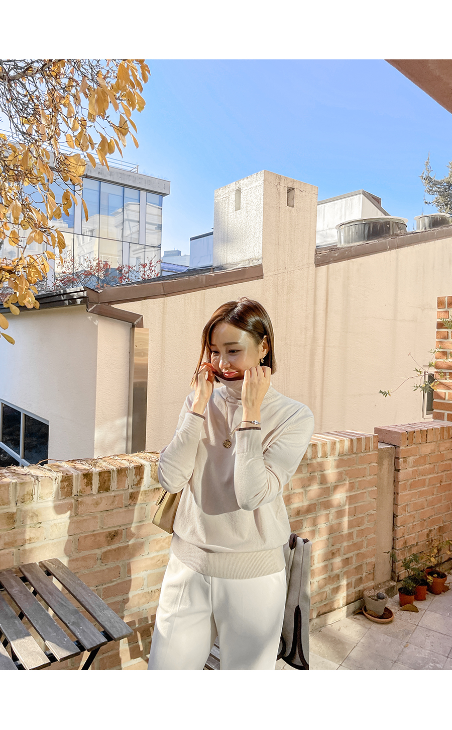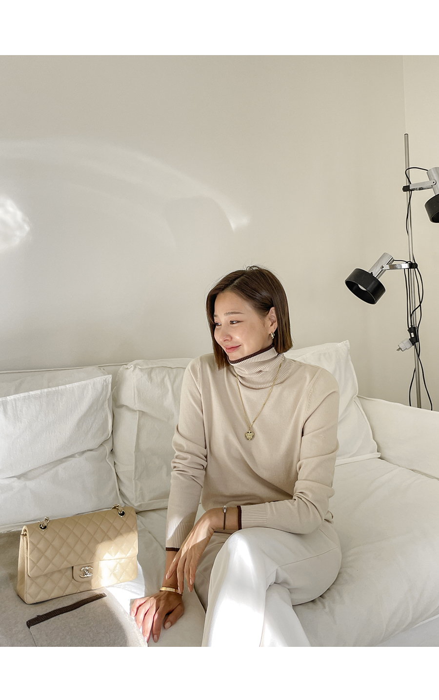 넥라인까지 포근히 감싸주는 폴라 디자인이에요.