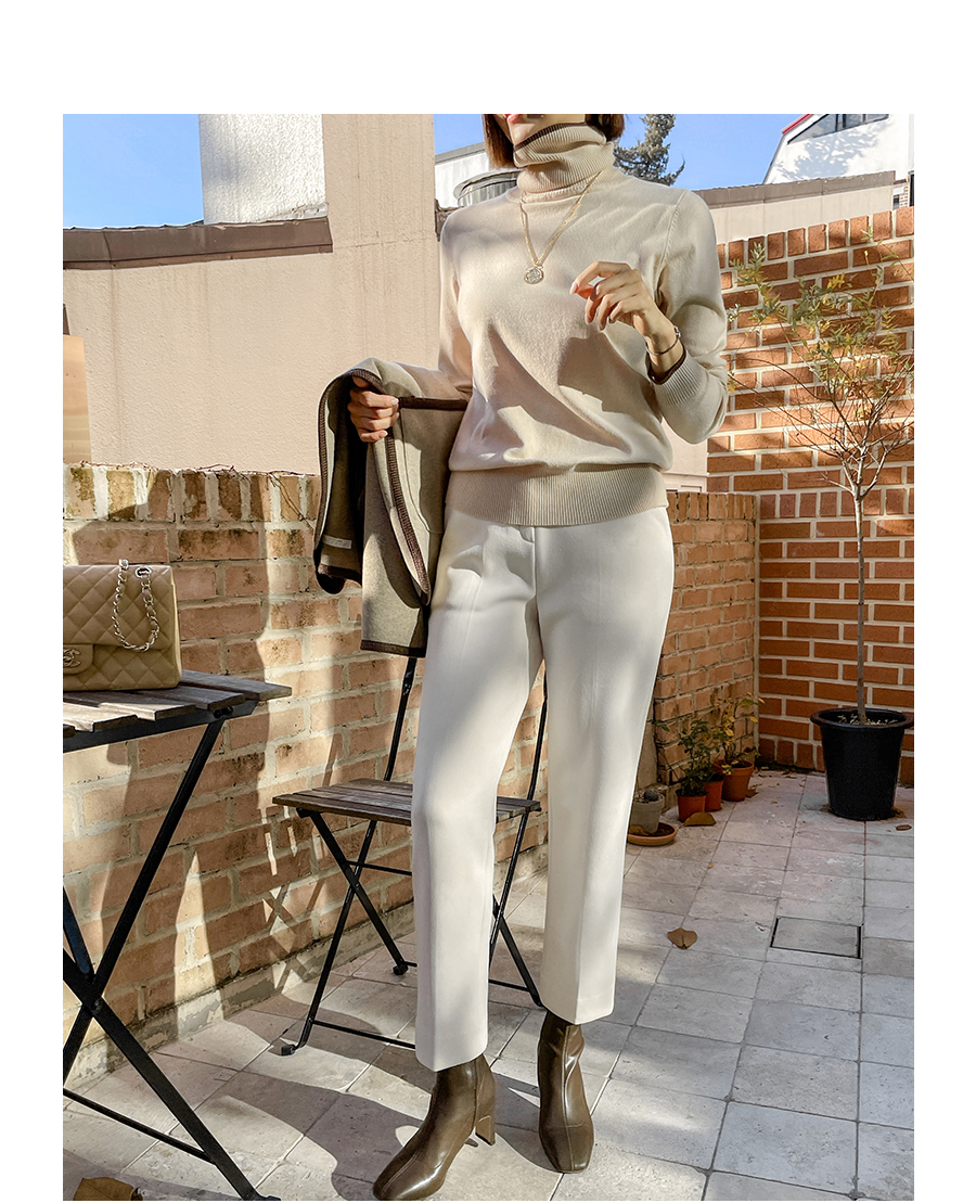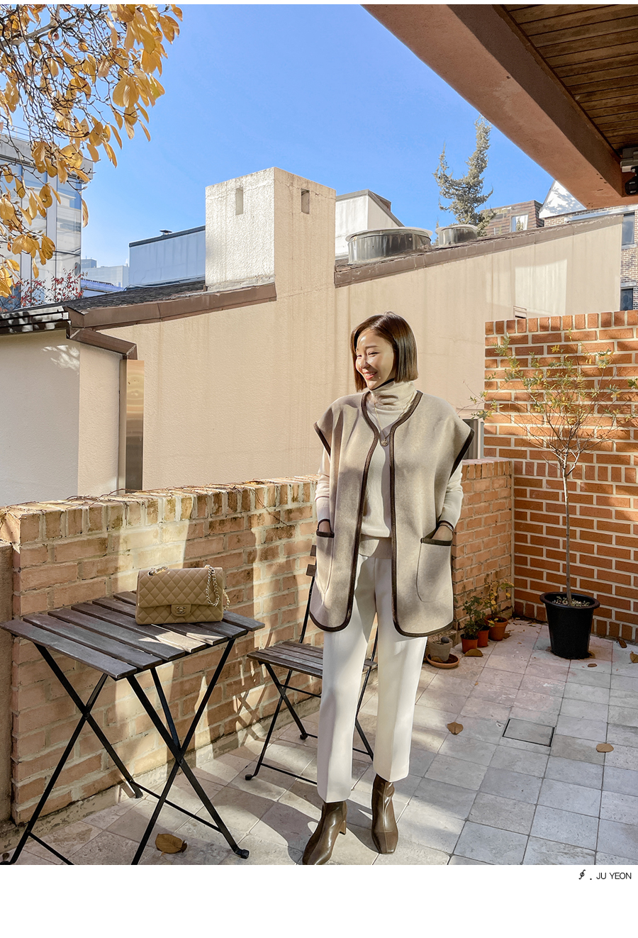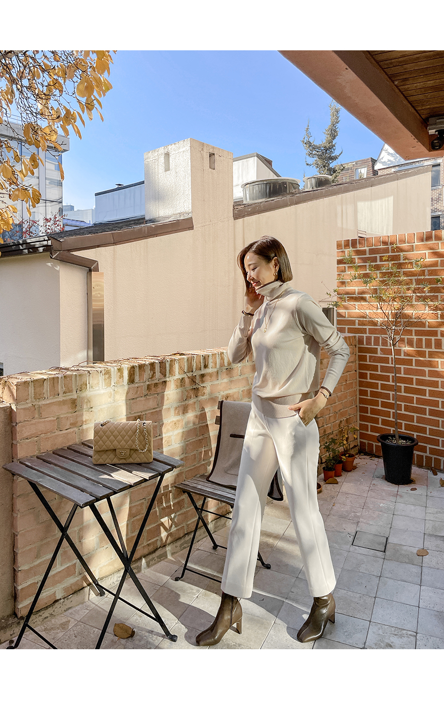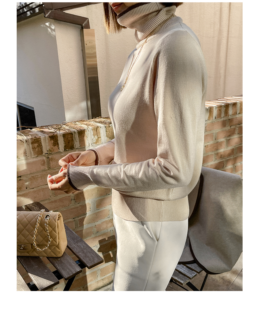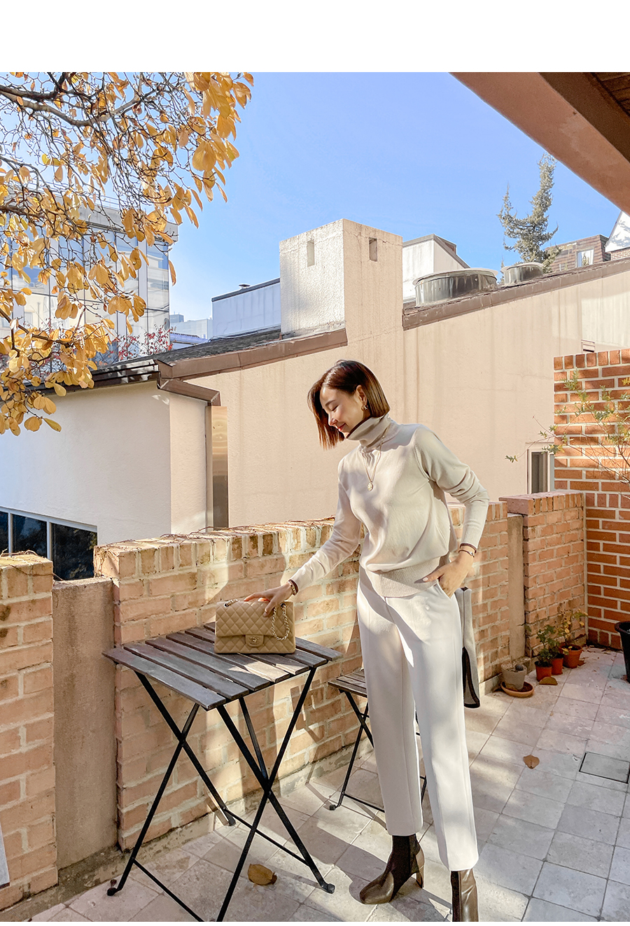 넥라인까지 포근히 감싸주는 폴라 디자인이에요.