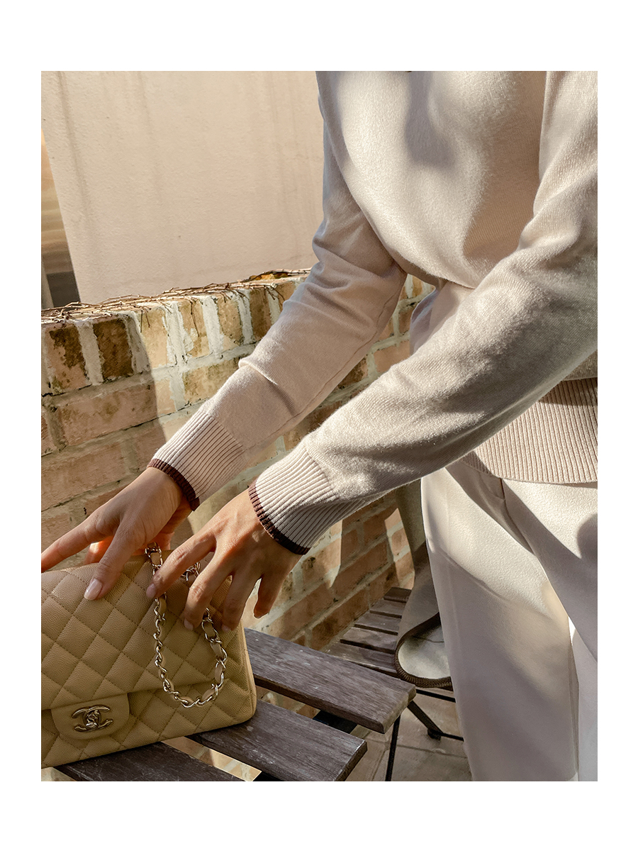 한층 높게 더해진 밑단은 쫀쫀한 시보리로 마감하여